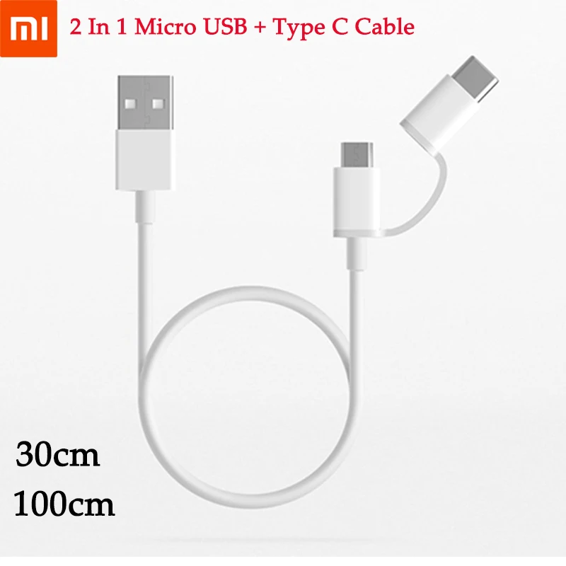 Оригинальный Xiaomi Mi 2 в 1 кабель для быстрой зарядки Micro USB + USB Type-C кабель для быстрой зарядки для Redmi 7 7A 6A 9 Note 7 8 8T Pro Mi 5 6 8