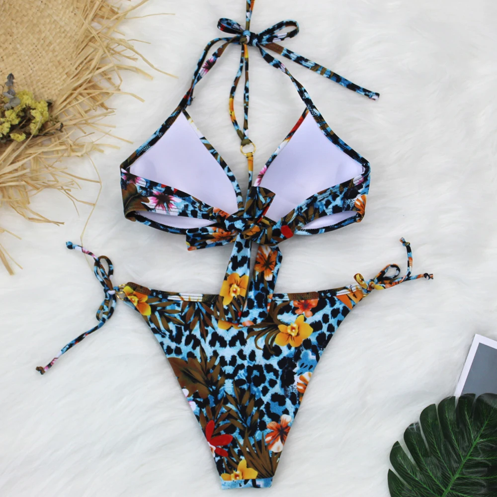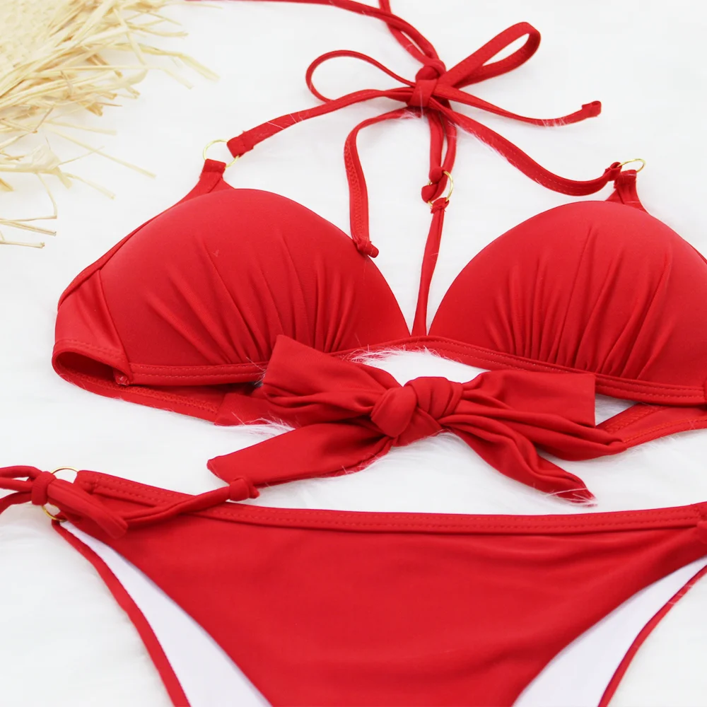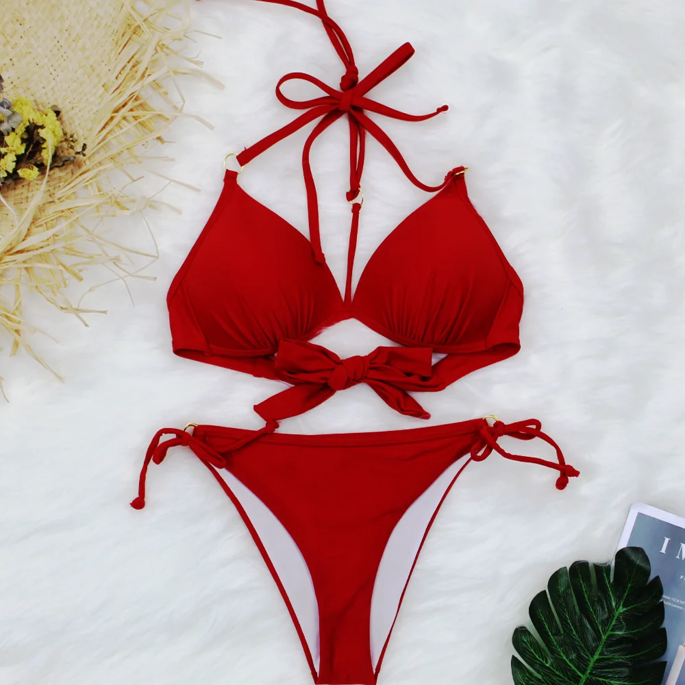 Бикини пуш-ап, женский купальник с лямкой на шее, бандажный купальн...
