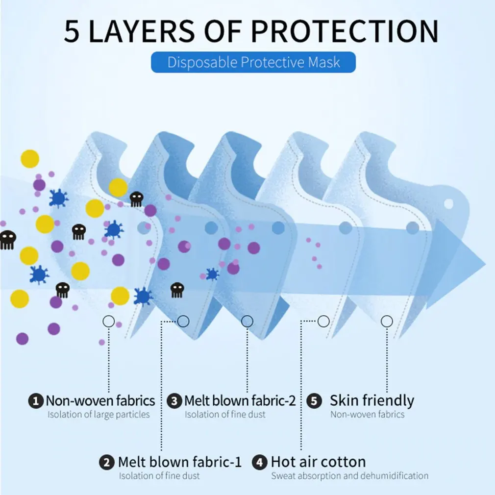 Доставка за 10 дней! Маска для лица FFP2, 5 слоев, с фильтром, защитный уход за здоровьем, сертификация CE, 95% маска для лица, маска для рта в коробке