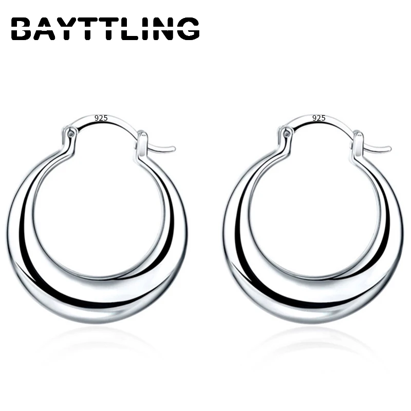 BAYTTLING Новые 30 мм серебряные круглые серьги-кольца с Луной для женщин модные Гламурные свадебные подарки ювелирные изделия