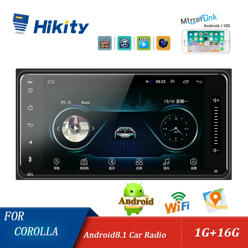 Hikity Автомагнитола 2 din автомобильное радио 7 дюймов Android 8,1 Автомобильный мультимедийный MP5 плеер GPS зеркало ссылка автомобильный стерео для Toyota Corolla автомобили