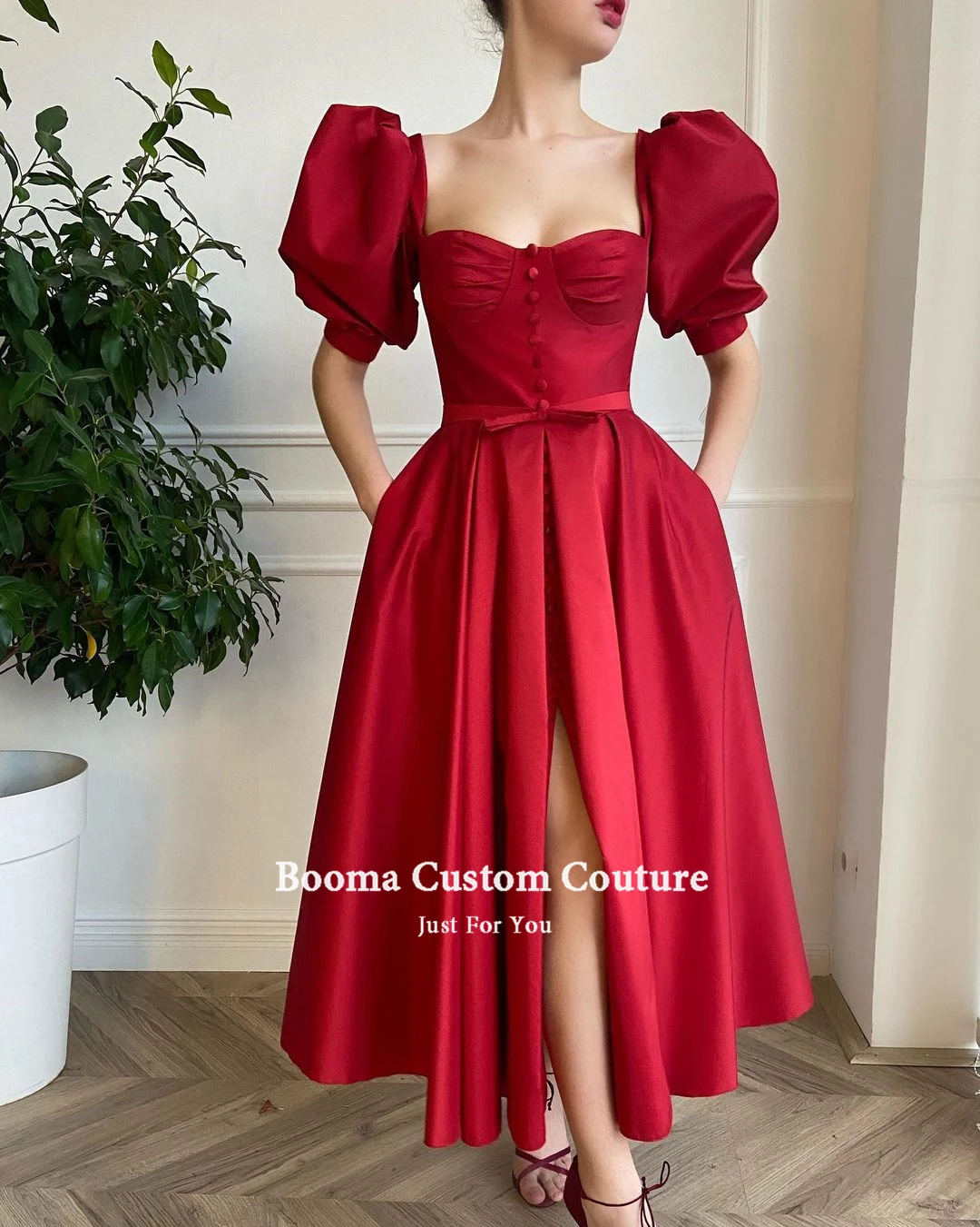 Элегантное красное короткое платье Booma для выпускного вечера, пышные рукава, разрез спереди, на пуговицах, с карманами, свадебные платья длиной до колена