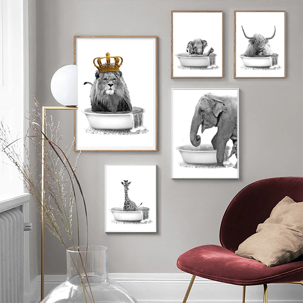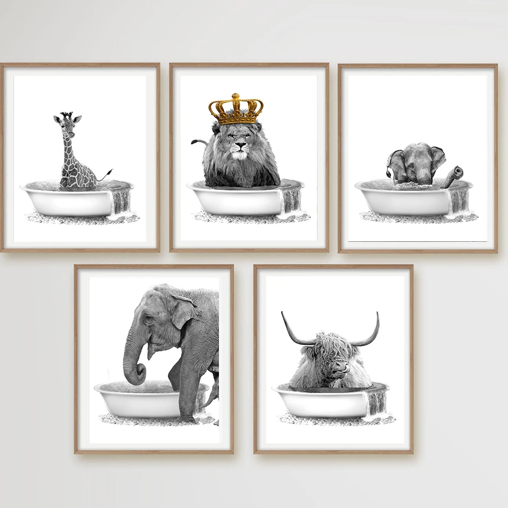 Детское животное в ванной постер Highland корова жираф лев картина слона на холсте детская стена искусство Скандинавское изображение декор для детской комнаты