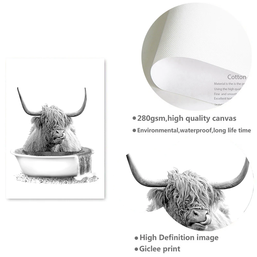 Детское животное в ванной, Постер Highland, корова, жираф, Лев, детской настенной картины, декор детской комнаты в скандинавском стиле