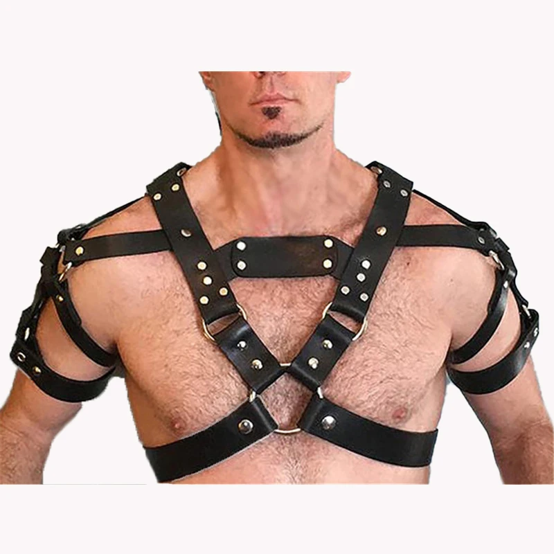Портупея Мужская нагрудная бондаж из искусственной кожи гей Эротическое белье Боди клетка Регулируемый Фетиш Клубная одежда сексуальный панк Рейв Косплей Топ