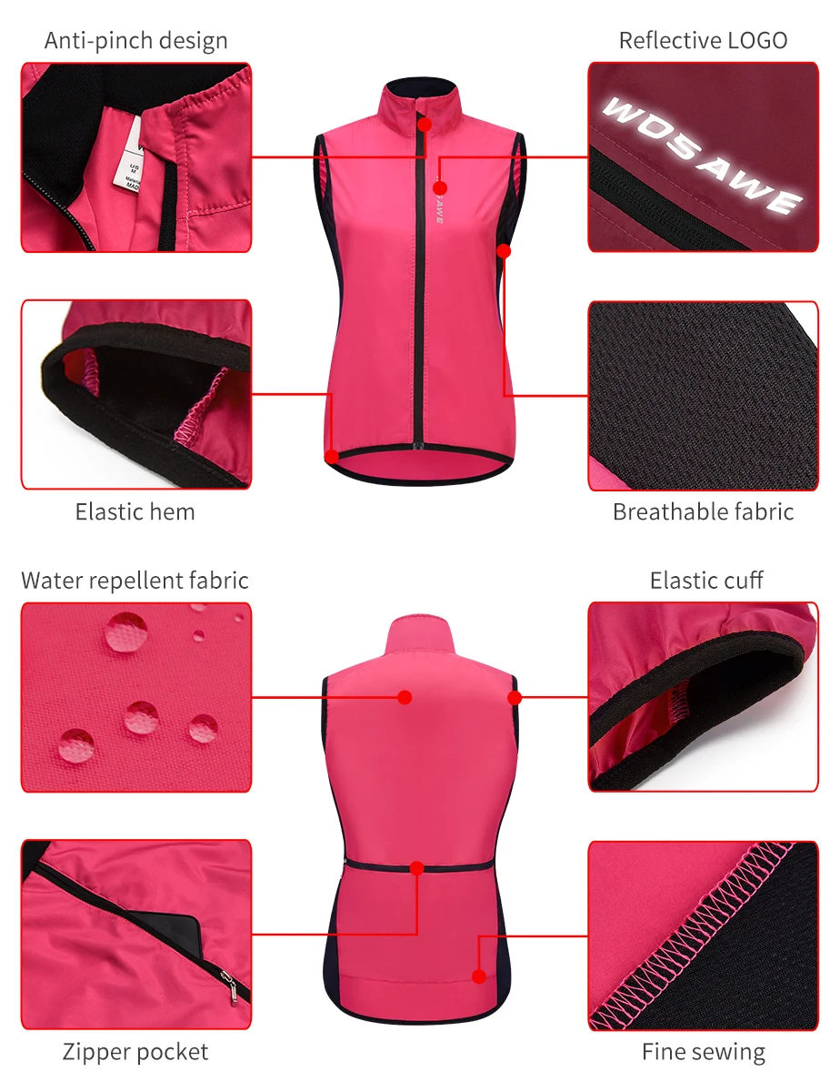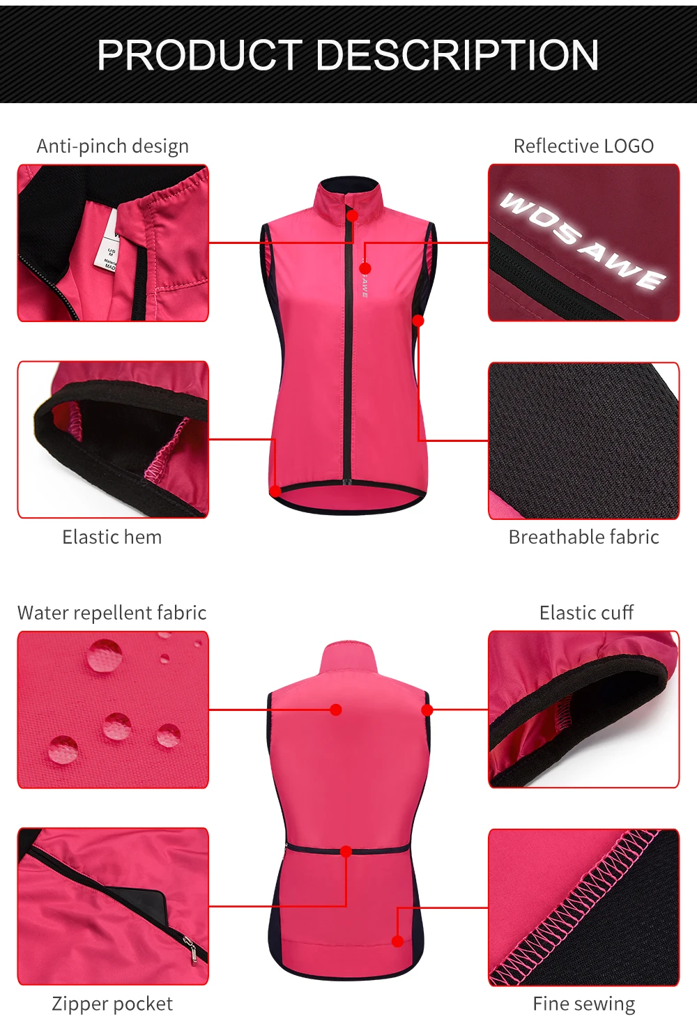 WOSAWE женский жилет для велоспорта ветровка легкий ветрозащитный водонепроницаемый жилет для бега без рукавов Велоспорт Джерси