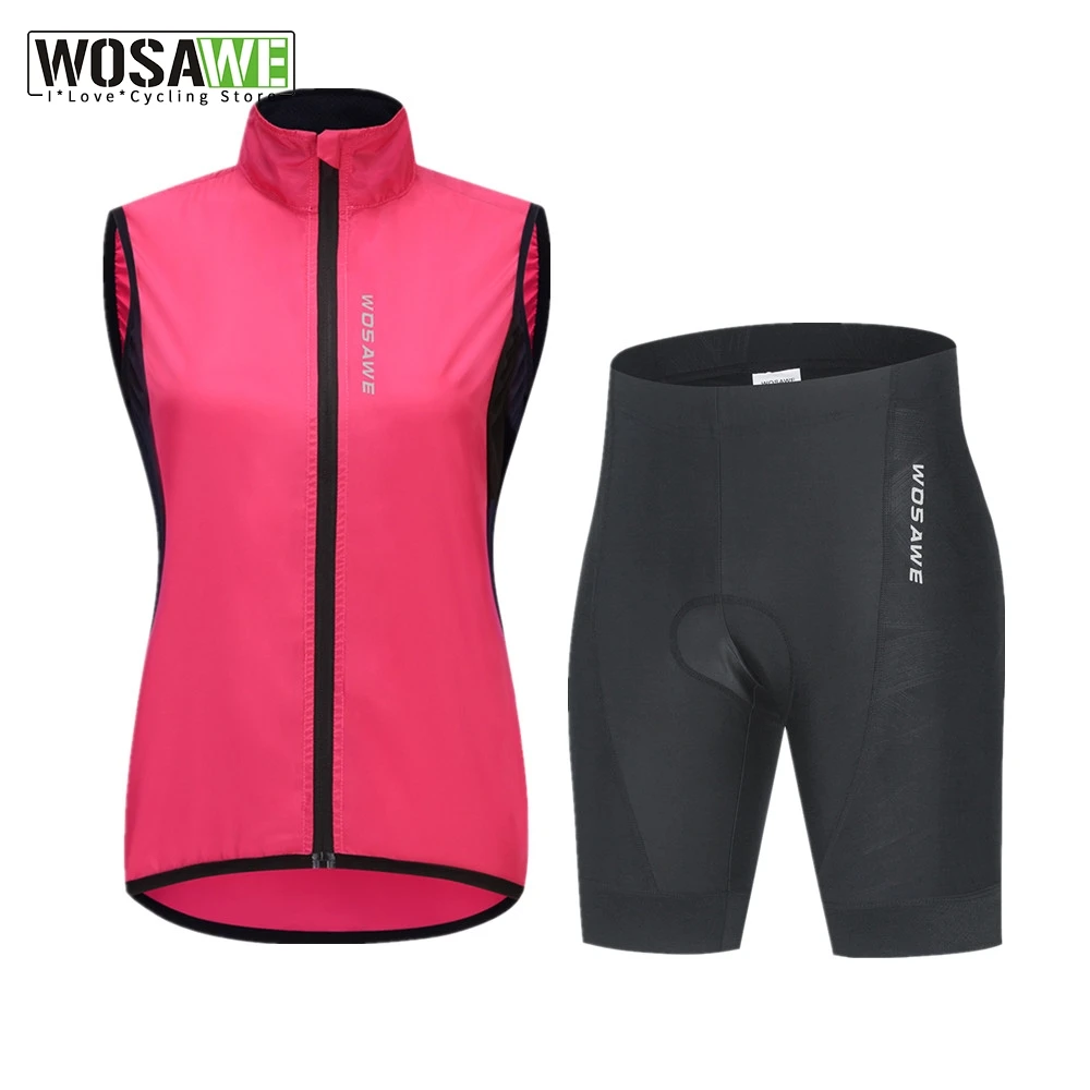 WOSAWE набор велосипедных жилетов, Женский велосипедный костюм, летний комплект без рукавов с защитой от УФ-лучей и 5D гелевыми шортами с подкладкой, комплект велосипедных Джерси