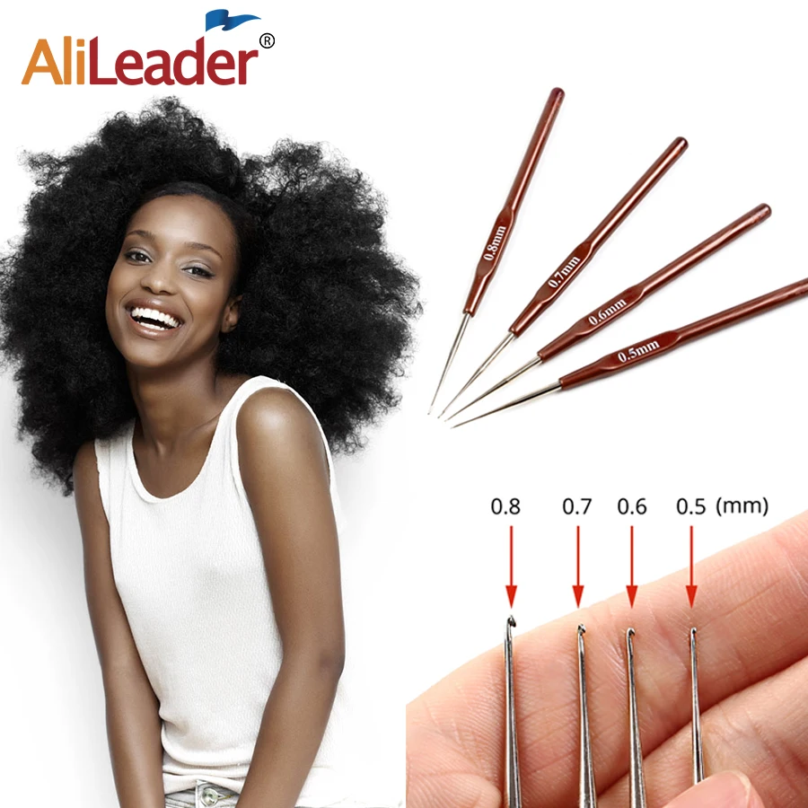 Alileader 4 шт.лот вязальный крючок 0,5 "0,6" 0,7 "0,8 мм микро крюковые иглы для парика решений крючком замки косы плетения иглы инструменты