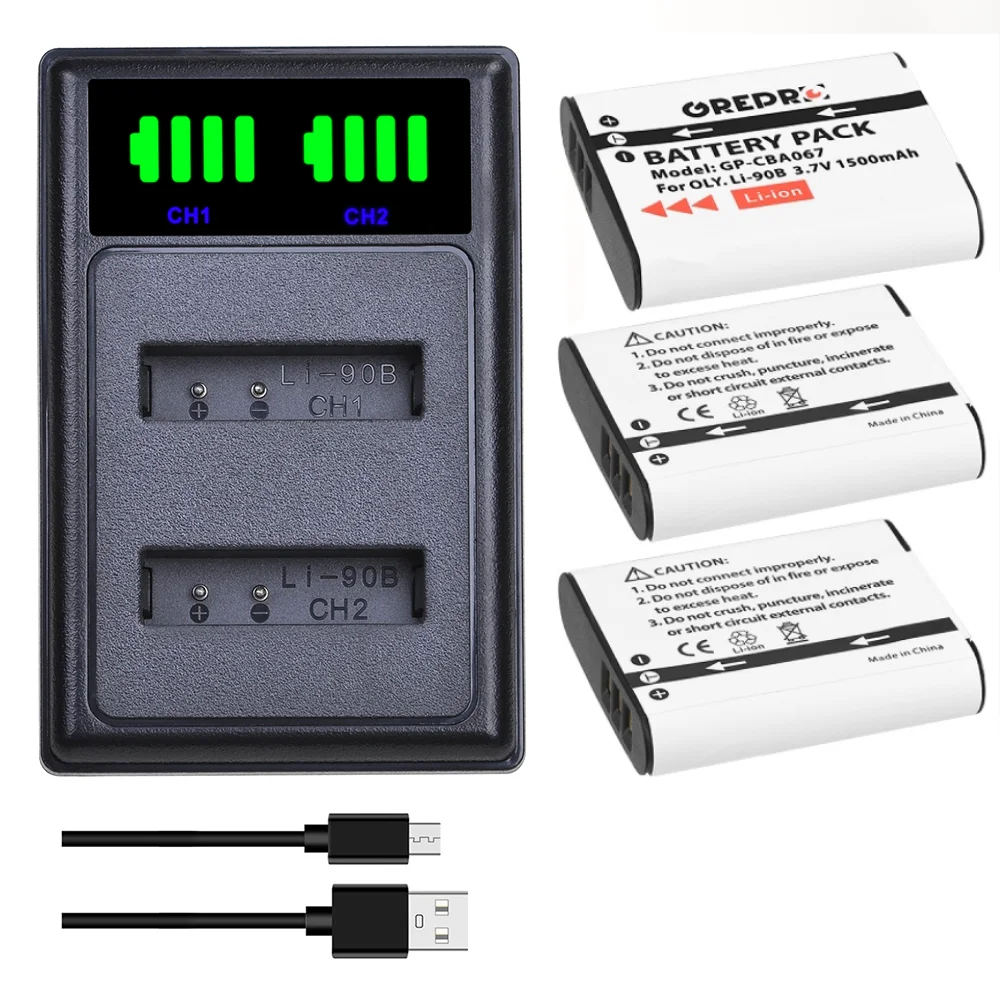 3 шт. Li-90B Li-92B Li90B Li ion аккумулятор 90B Батарея + Зарядное устройство с Тип-c и USB Порты и разъёмы для цифровой камеры Olympus SH-1 молодых мам SH-2 SH-50 его SH-60 жесткая TG-3 TG-4