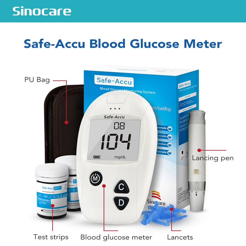Глюкометр Sinocare Safe-Accu, медицинский диабетический тестер с 50100 полосками глюкозы и ланцетами, кровь с сертификатом CE