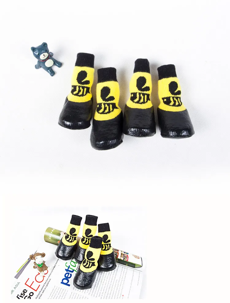 4 шт.компл. уличные водонепроницаемые нескользящие носки с защитой от пятен для собак и кошек, ботинки с резиновой подошвой, защита лап домашних животных для маленьких и больших собак
