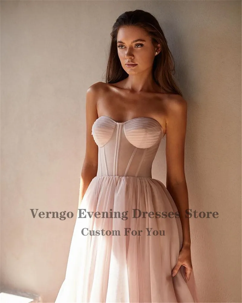 Verngo простое бледно-розовое Тюлевое длинное платье трапециевидной формы для выпускного вечера 2021 милое Прозрачное платье с открытыми косточками со шнуровкой сзади вечернее платье