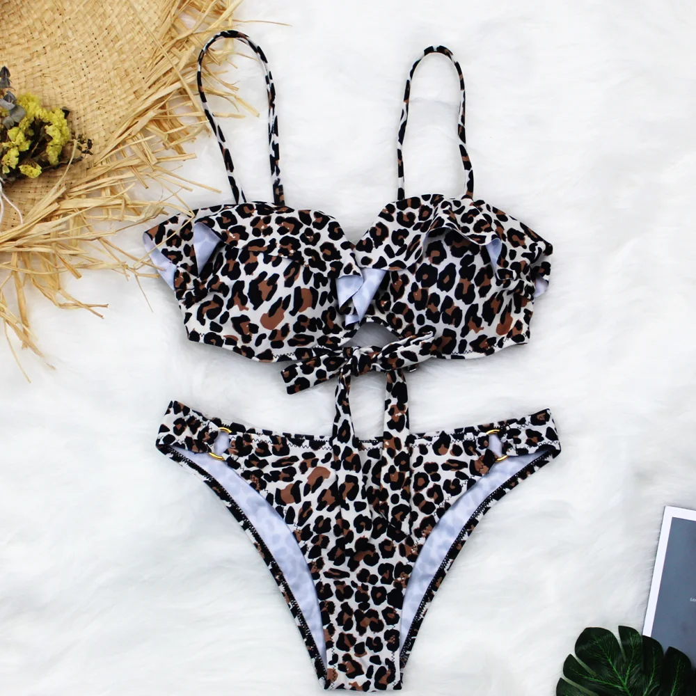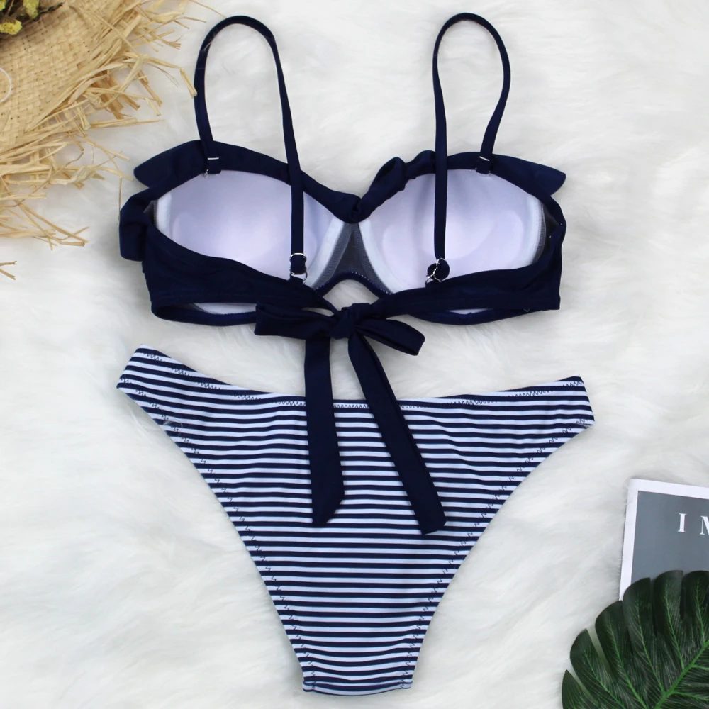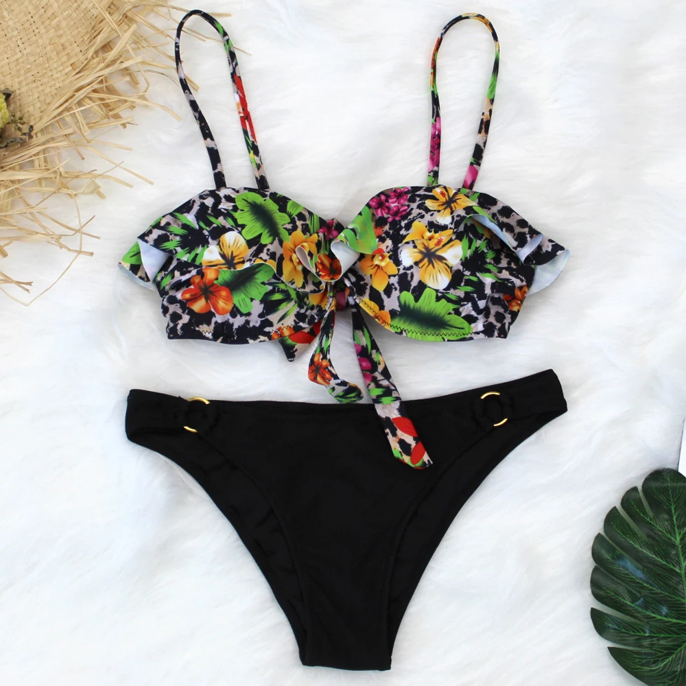 Женский купальник с чашками пуш-ап и оборками, Размеры S 2XL