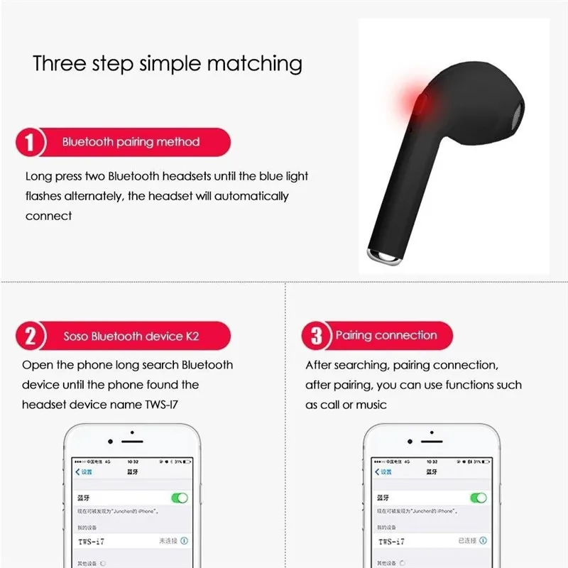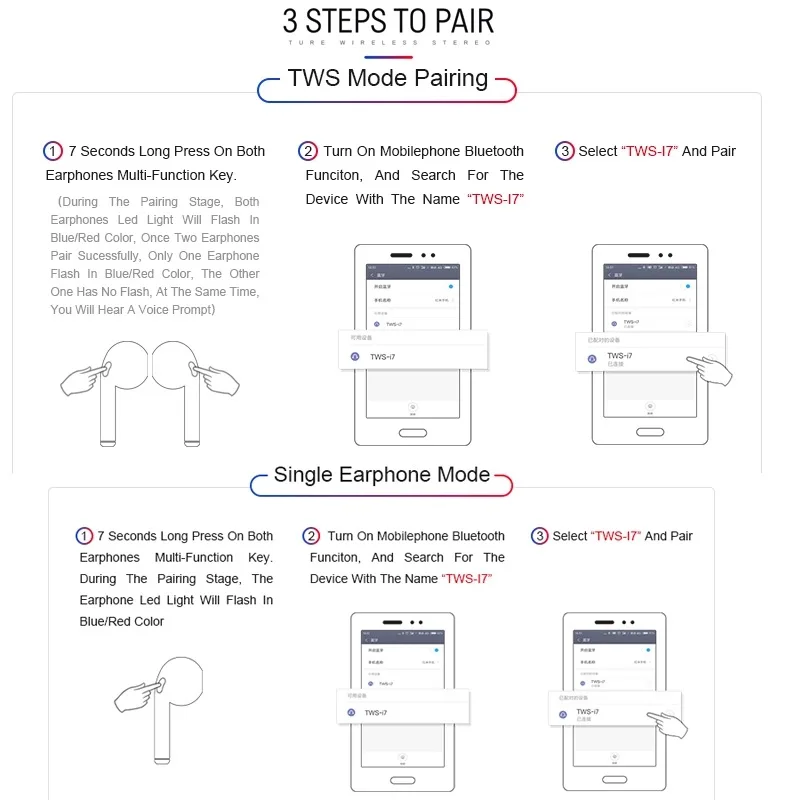 (3) в это время, включите телефон Bluetooth снова, чтобы подключиться к телефону. Функция кнопки: Длительное нажатие, включение питания, длительное нажатие, выключение питания, нажмите музыкальную паузу/воспроизведение, ответ на вызов/завершение вызова, дважды щелкните next songNote: Автоматическое выключение через три минуты без подключения гарнитуры к гарнитуре после загрузки. Советы по зарядке: напоминание о зарядке наушников светильник: Зарядка наушников красный светильник зарядный бокс советы по зарядке: 1. Когда зарядный бокс заряжается от наушников: светодиодный светильник зарядного бокса всегда горит, светильник выключается после включения наушника. 2. При зарядке зарядного бокса: Красный светодиодный зарядного бокса мигает, а красный светодиодный всегда горит после полной зарядки.