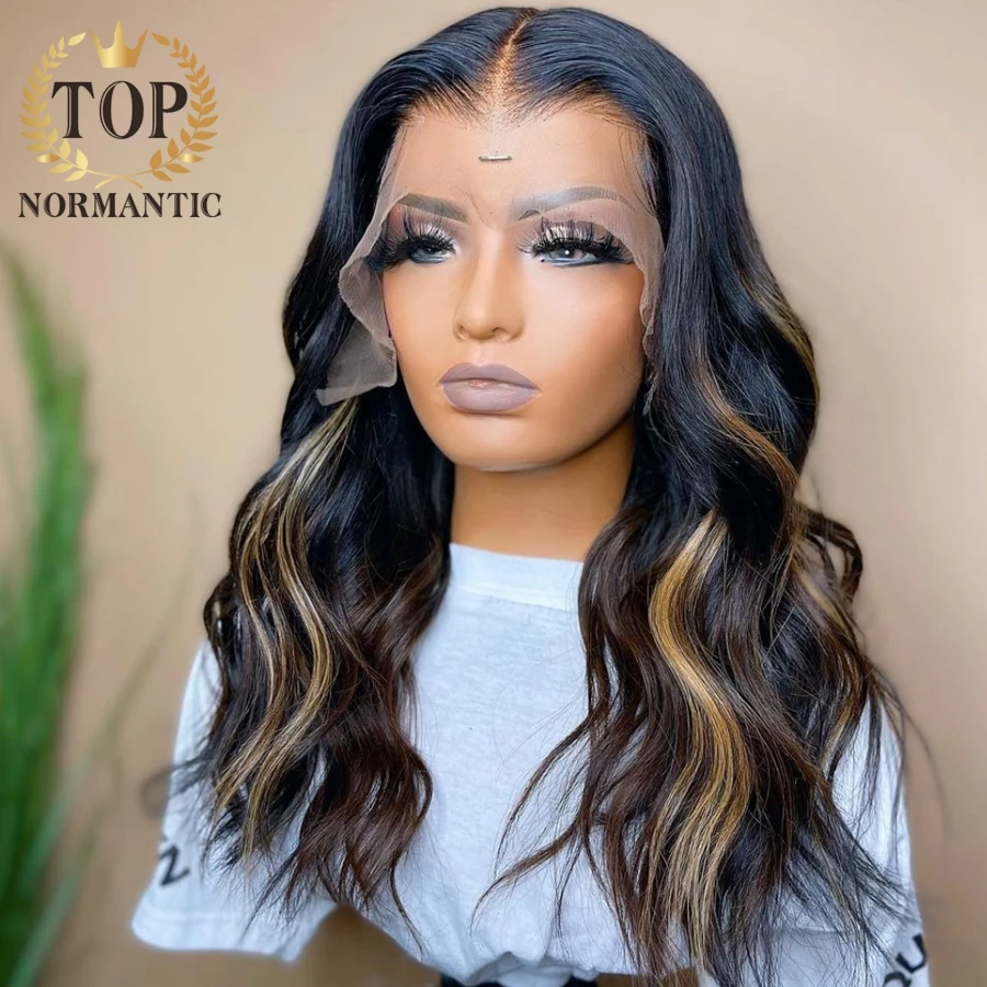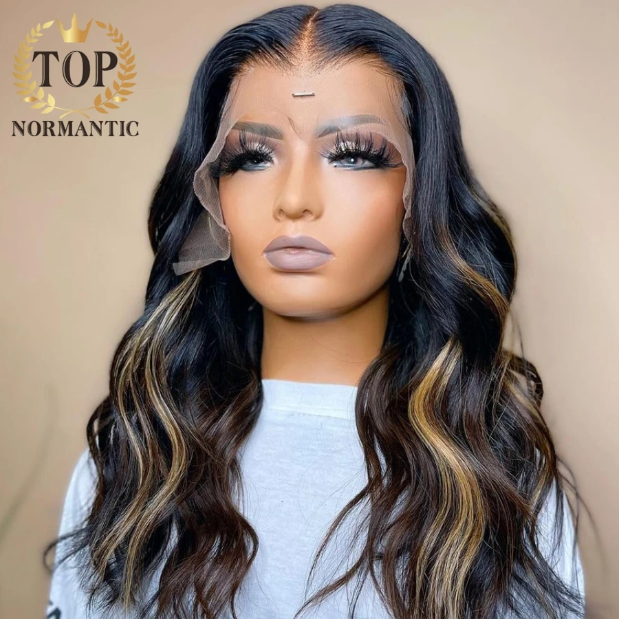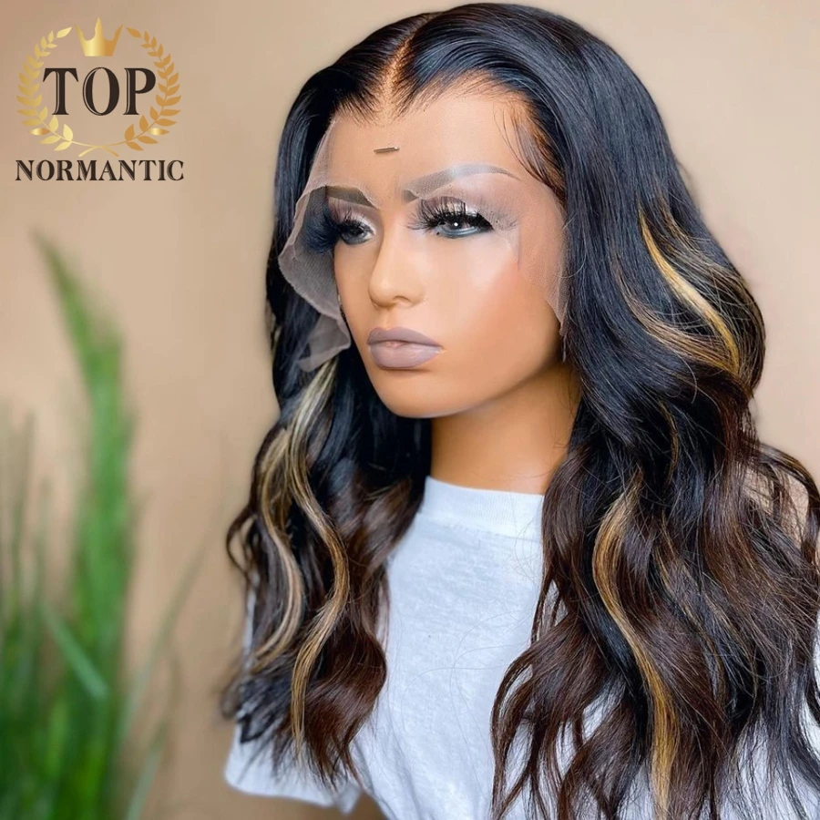 Topnormantic бразильские Remy человеческие волосы 13x 6 кружевные передние парики для женщин хайлайтер цвет тела волнистый парик с предварительно выщипанной линией волос