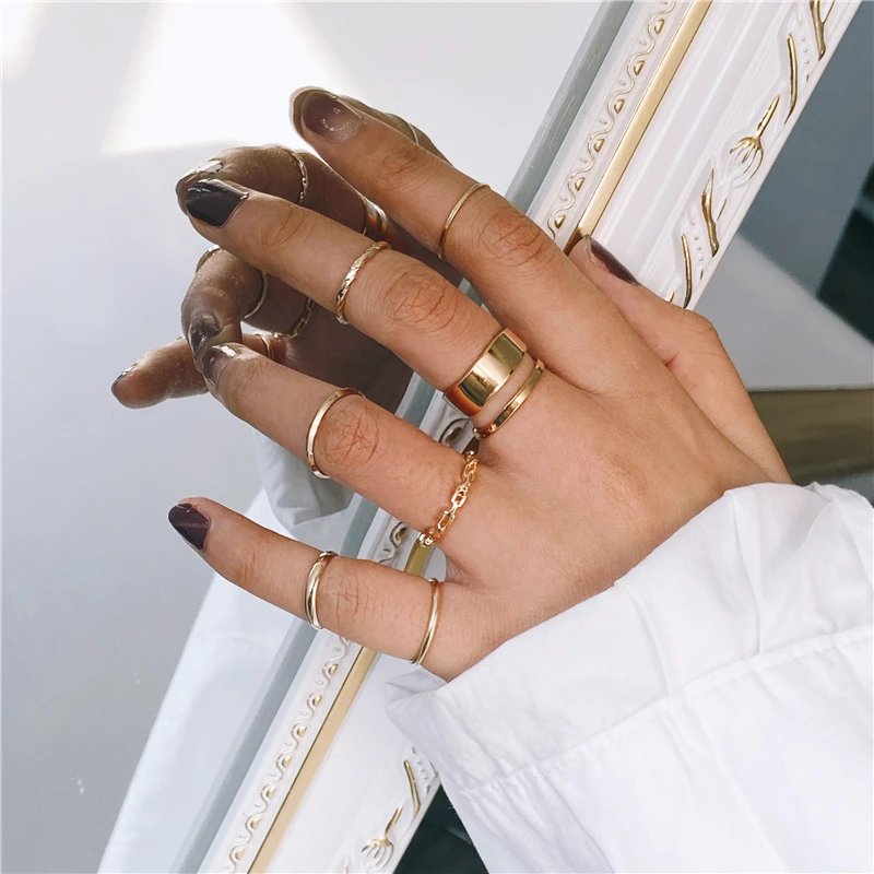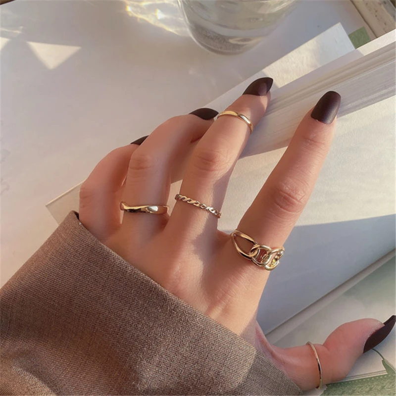 Комплект колец 17KM для женщин и девушек, простой комплект из толст...