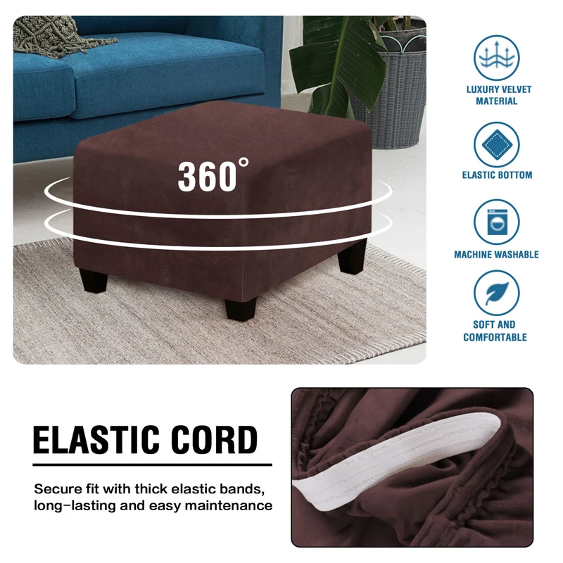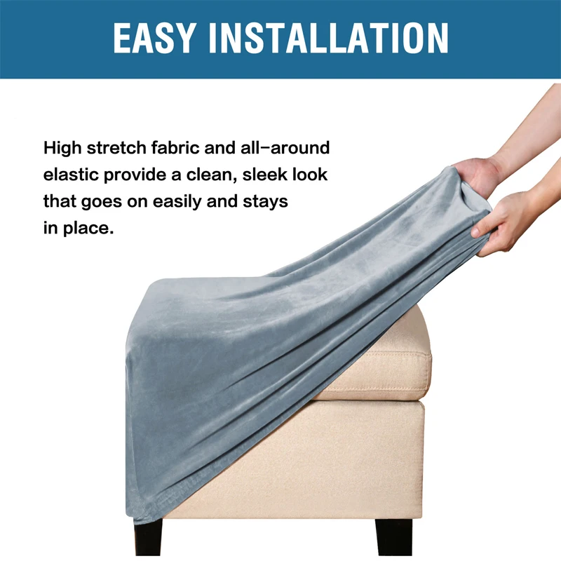 Тонкая ткань: Бархатная ткань с сильной эластичностью подходит для более чем 90% мебели. Он может идеально подогнать вашу пуфику, закрывая пуфик в ever edge, что увеличивает время использования. А наши чехлы используют уникальную технологию окрашивания, она не потускнеет.