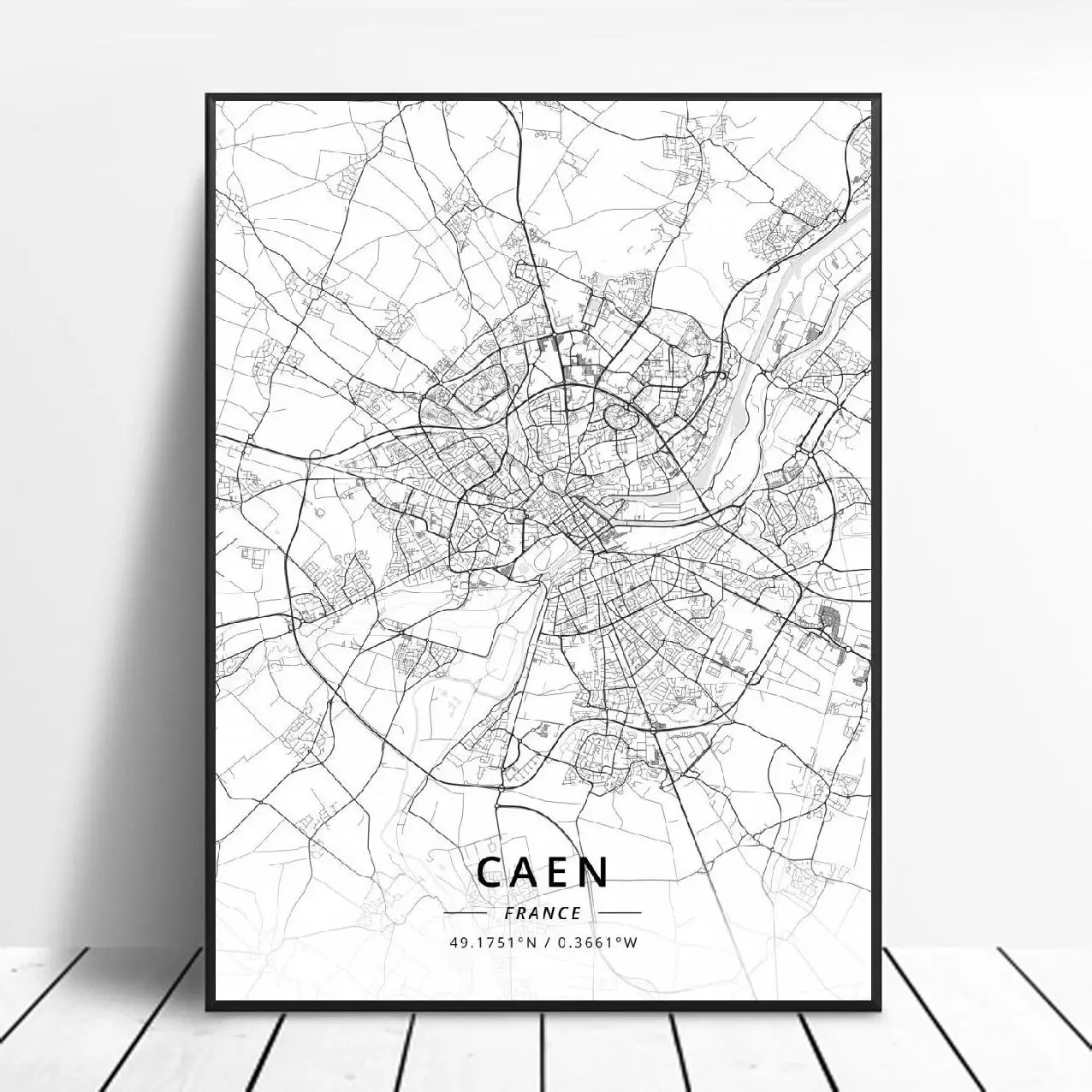 Черно-белый холщовый постер с принтом карты города стальбум, Соврем...