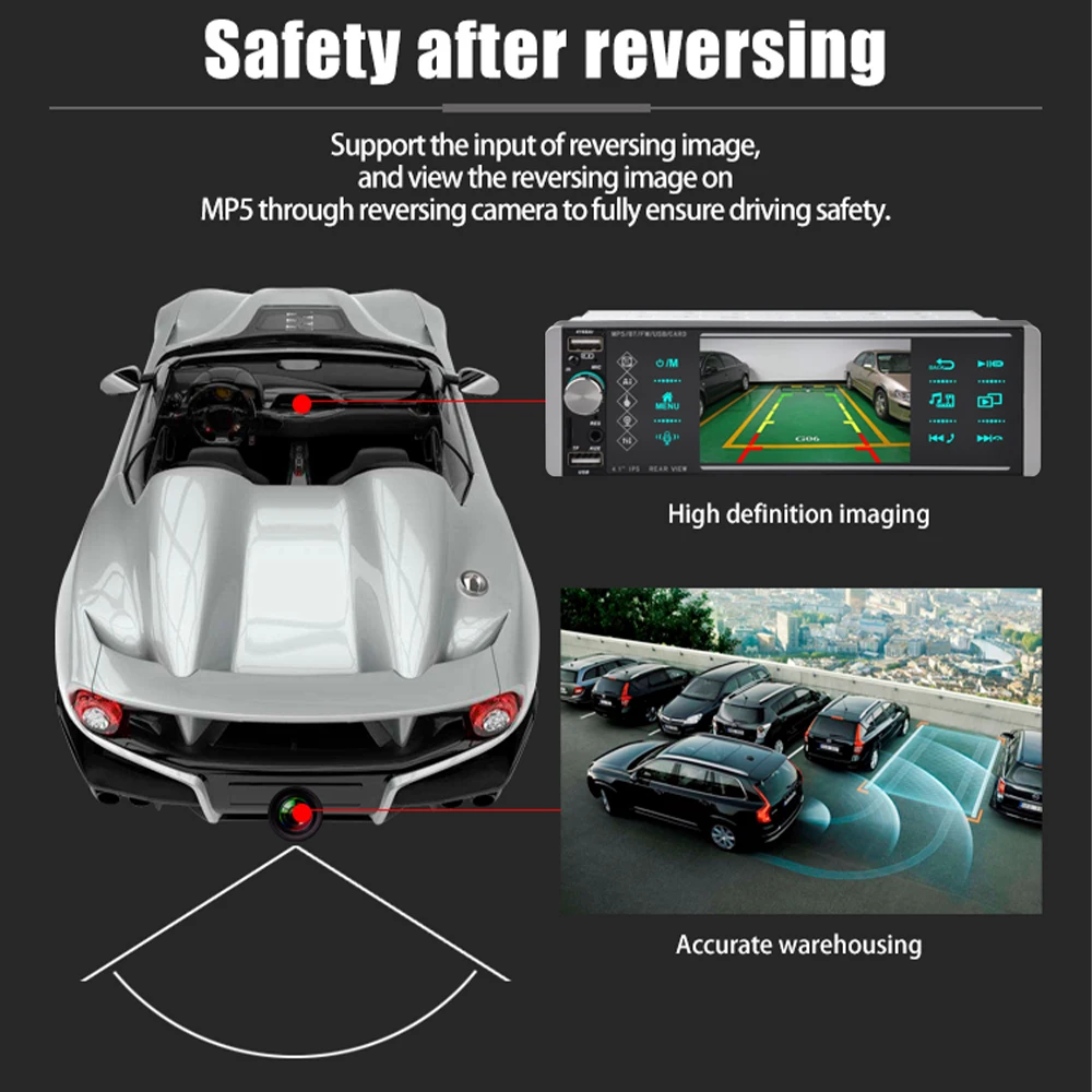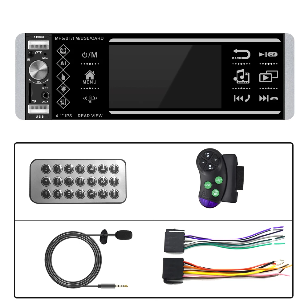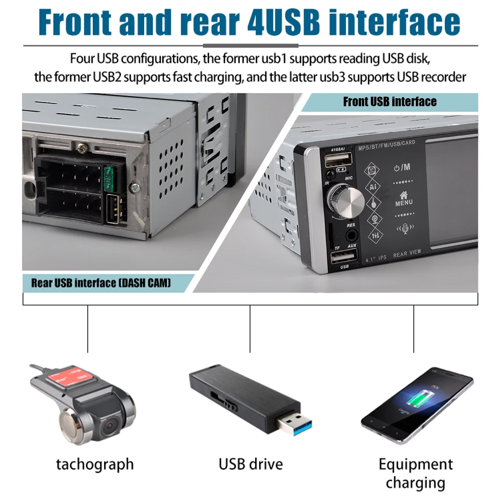 Выдающиеся точки продаж товаров:4 дюйма IPS дисплей/многофункциональное голосовое/3 U диск/полный сенсорный емкостный сенсорный экран/видеорегистратор/FM/мульти-радио/много языков/сабвуфер выход/назад/Быстрая зарядкаГолосовая функция:Автомобиль MP5 голосовой помощник после подключения по Bluetooth, нажмите кнопку голосовой связи машины, чтобы позвонить функции голосового ассистента телефона, голосовой вызов, открыть музыку, открыть карту и функции приложения различных мобильных телефонов. MP5 Голосовая Синхронизация с голосом мобильного телефона, не ограниченная языком разных стран.Особенности1,3 функция USB: Поддержка большой памяти USB (u-диск), вы можете скачать музыку или фильмы, которые ваши любимые, играть на этом блоке, задний интерфейс usb может подключаться к Dash камере2. Функция быстрой зарядки телефона: больше не нужно беспокоиться о том, что ваш телефон не работает во время вождения, этот автомобильный MP5 плеер поддерживает usb-интерфейс для зарядки телефона3. Обновленная двойная система зеркальной связи: IOS/Android зеркальной связиIOS one-way :IOS поддерживает мобильный телефон с односторонней проекцией на машинуAndroid двусторонний: Android поддерживает мобильный телефон двустороннее соединение4. Поддерживает Вход DVR, поддерживает только производство нашей компании usb-рекордера с протоколом, поддерживает изображение DVR в функции изображения5. Обучение рулевому колесу: через него вы можете управлять функциями, которые вам нужны, с помощью рулевого колеса, более удобно6. Семь цветов подсветки: поддержка семи цветов подсветки, вы можете выбрать семь цветов в качестве подсветки7. Функция tf-карты: Поддержка Большой карты памяти TF, вы можете скачать музыку или фильмы, которые вам нравятся, играть на этом устройстве8. Функция заднего вида: Поддержка входа камеры заднего вида, вы можете увидеть видео на экране MP5, хотя камера заднего вида, при поддержке вашего автомобиля9. Функция FM: fm-радио с высококачественной стереосистемой, которая может осуществлять поиск каналов полностью автоматическим способом, полуавтоматическим способом и адаптером10. Выбор различных эквалайзеров звуковых эффектов11. Поддержка подключения сабвуфера12. Поддержка внешнего входа AUX (plug)13. Пульт дистанционного управления: Поддержка дистанционного управления, вы можете управлять устройством с помощью пульта дистанционного управления, запуск/остановка/следующая/последняя музыка или фильм, радио, включение/выключение устройства14. Функция отключения памяти, звуковое состояние музыки или музыки во время отключения памяти15. Поддержка NTSC/PAL и включение настроек анимацииОсобенностиSNR:65 дБЧастотная характеристика: 20 Гц-20 кГцГромкоговоритель impendance:4Ω_8ΩМаксимальная выходная мощность: 4*60 ВтУстановить пароль: 1988Контроль тона: бас +/-7 дБ (100 Гц) ВЧ +/-7 дБ (100 Гц)Радио диапазон: FM однодиапазонныйFM частота: 87,5 МГц ~ 108 МГцЧувствительность: 25 дБСелективность: 60 дБРазделение: 35 дБФормат аудио: MP3/WMA/WAV/MKV/FLAC/OGG/APEФормат видео: FLV/RMVB/3GP/SWF/AVI/ASF/MJPEG/MP4 и т. Д.Язык: английский/китайский/Португальский/Испанский/русский/немецкий/итальянский/Польский/французский/японский/Турецкий/чешскийТовар входит в комплект1 х Автомобильный MP5 плеер1 х Кабель питания1 х Акустический кабель1 х управление рулевым колесом1 пульт дистанционного управления1 x Руководство пользователяЧасто задаваемые вопросы:1. Почему нель