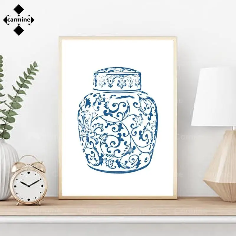 Китайские вазы, Художественная Картина на холсте, синий и белый фарфоровый плакат, печать на холсте, настенные картины для гостиной, украшение для дома