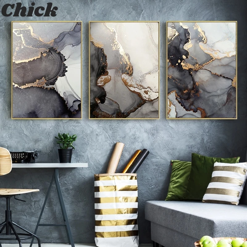 Абстрактная Золотая Роскошная Картина на холсте Акварельные картины Домашний декор настенные художественные минималистичные плакаты и принты для гостиной