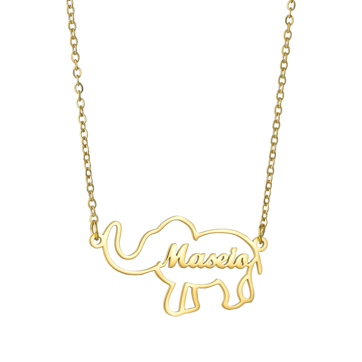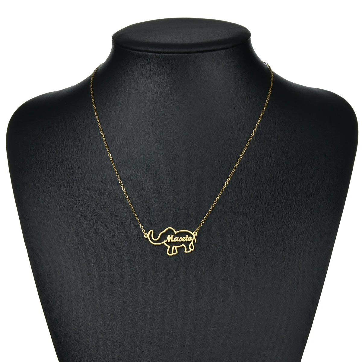 Название: ожерелье Goxijite с индивидуальным именем для женщин, персонализированное колье из нержавеющей стали с именной табличкой, подвеска в виде слона, готическое ювелирное изделие