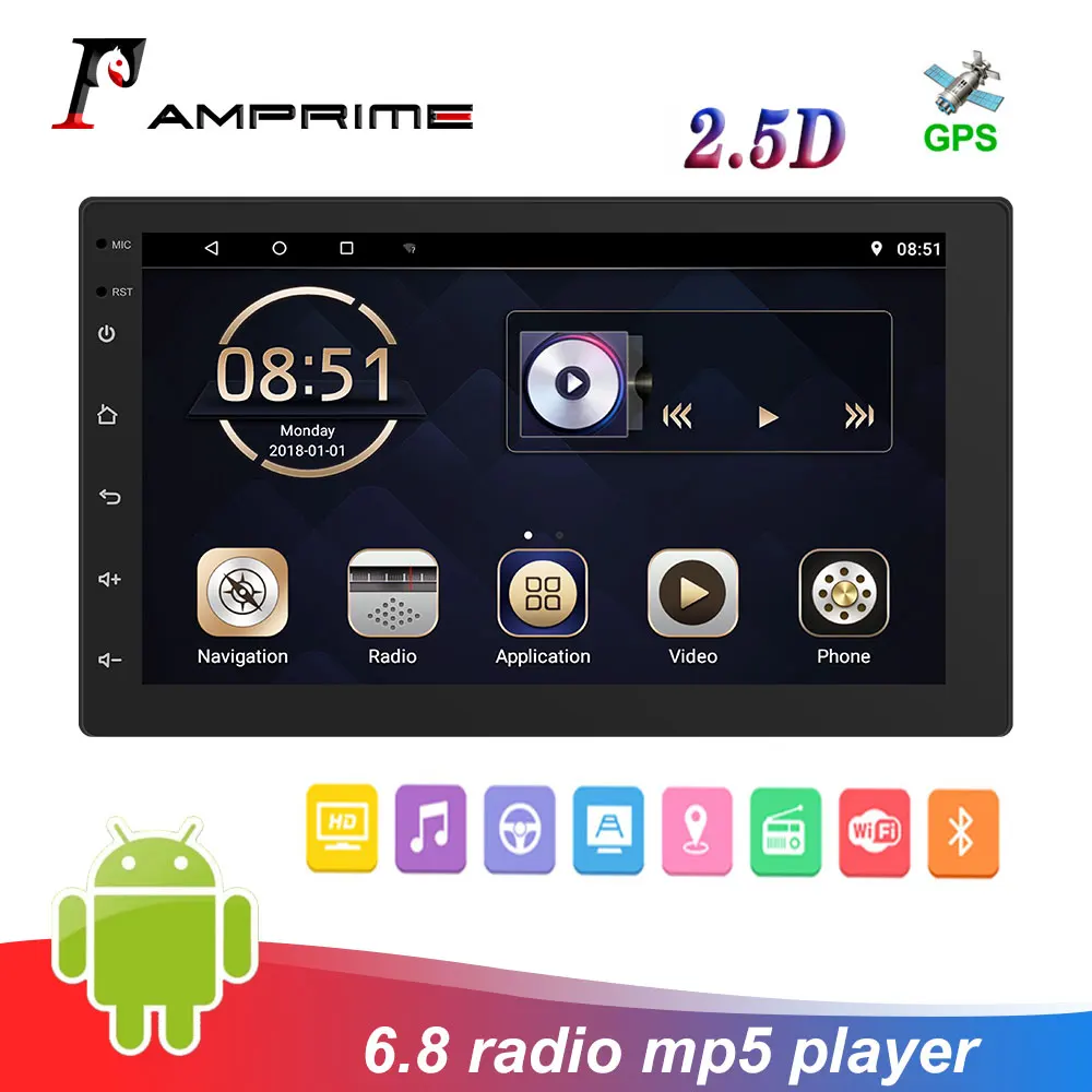 Android двойной Din автомобильное радио 6,8 ''емкостной сенсорный экран с Mirroilink GPS навигация WIFI Bluetooth Камера заднего вида