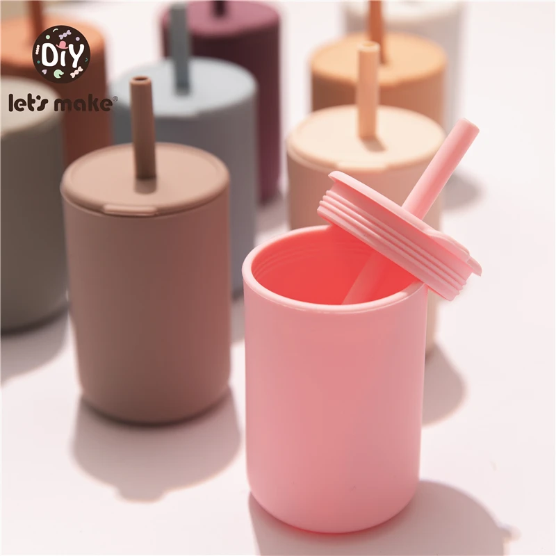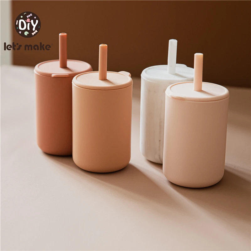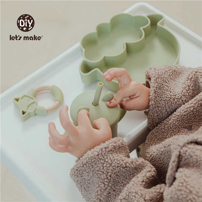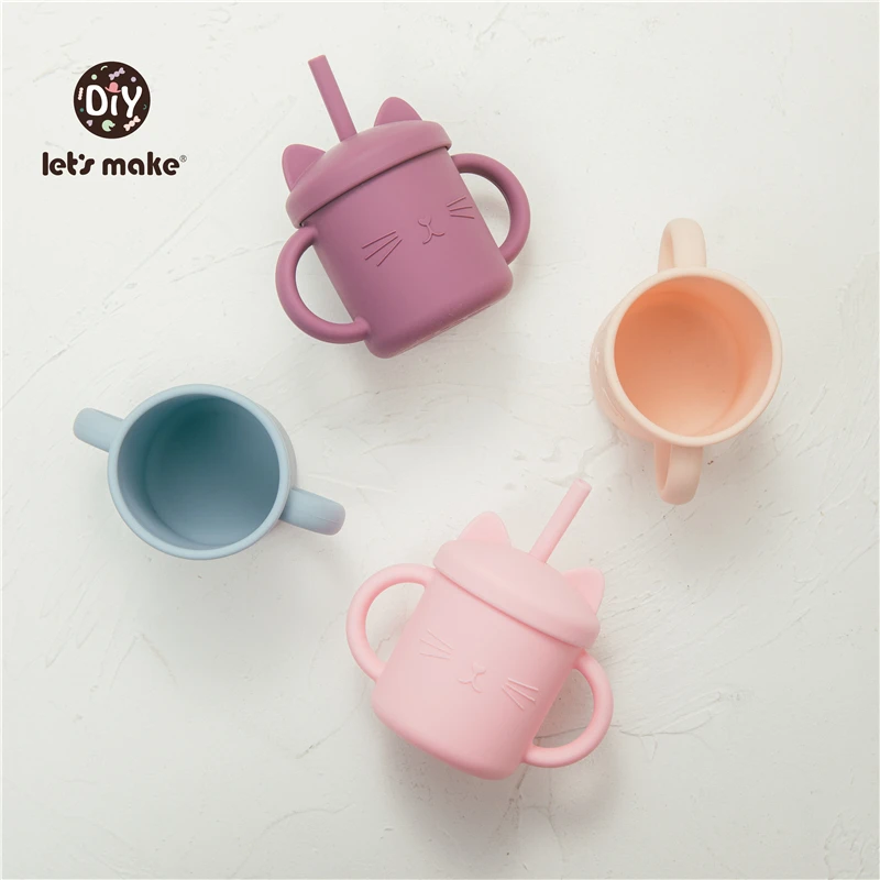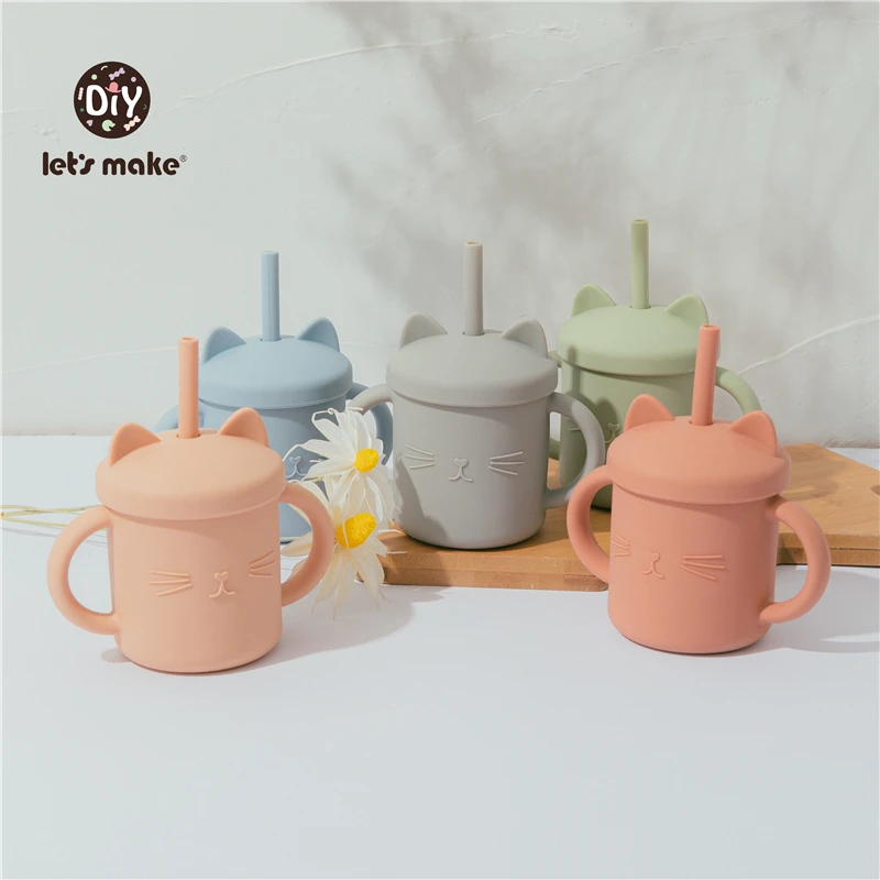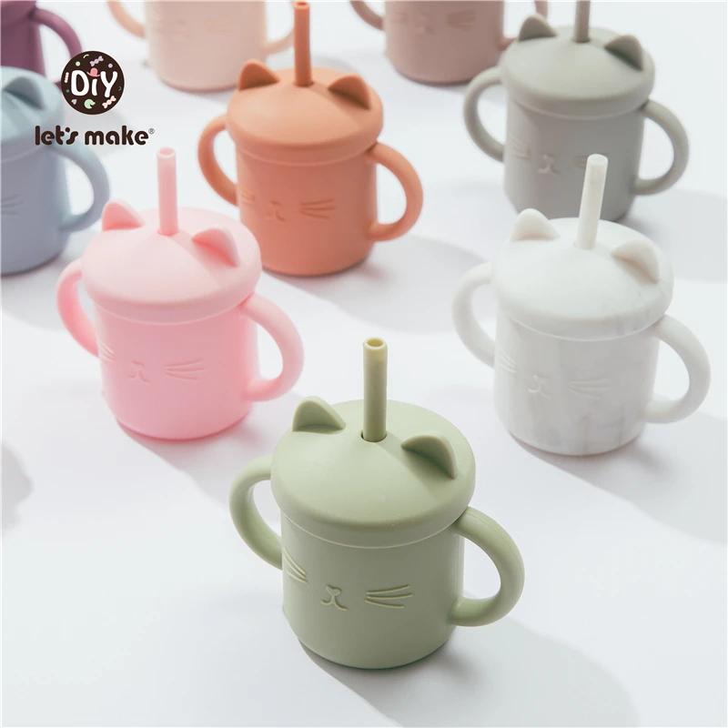 Детская кружка для воды let's make с соломинкой, кружка для бесплатного кормления детей, герметичная бутылка для воды с кошачьими ушками, складная силиконовая чашка, детские товары