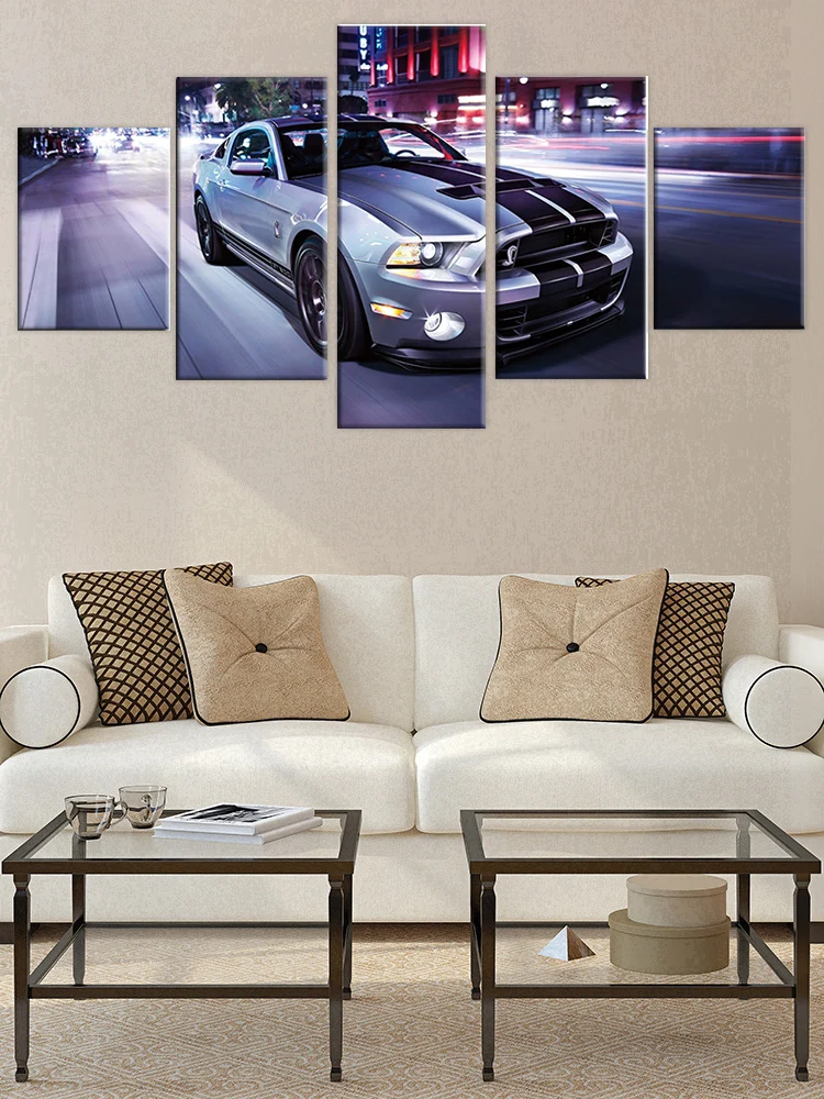 Печатная живопись настенное искусство Модульная картина знаменитый автомобиль Ford Mustang Shellby GT500 Супер Змея Автомобиль Холст плакат украшение для дома