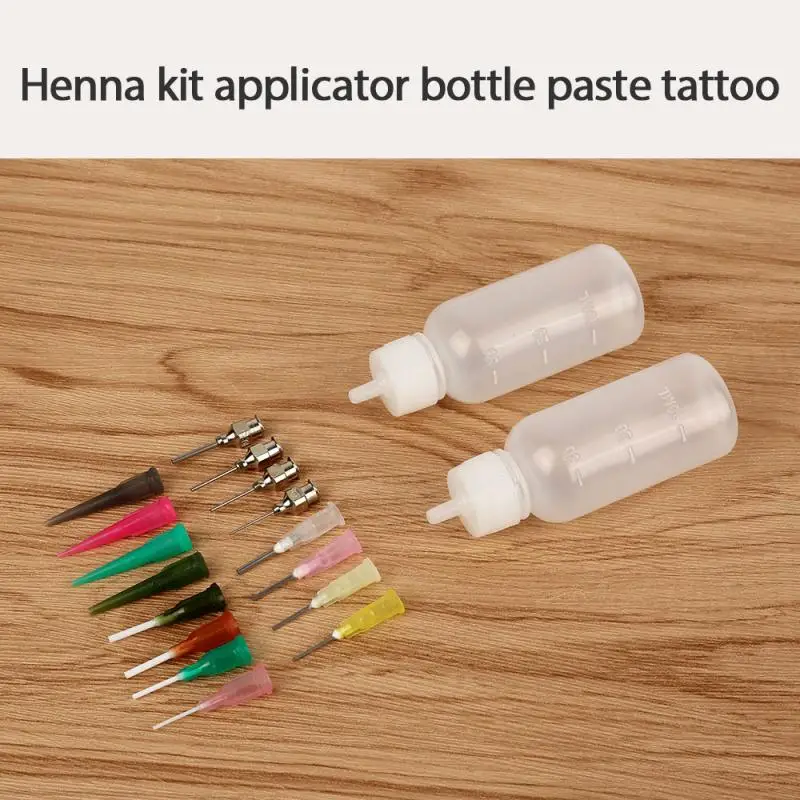 2 шт хны аппликатор бутылки (1,18*3,35 дюймов) с 16 шт игл для хны ягой татуировки наборы