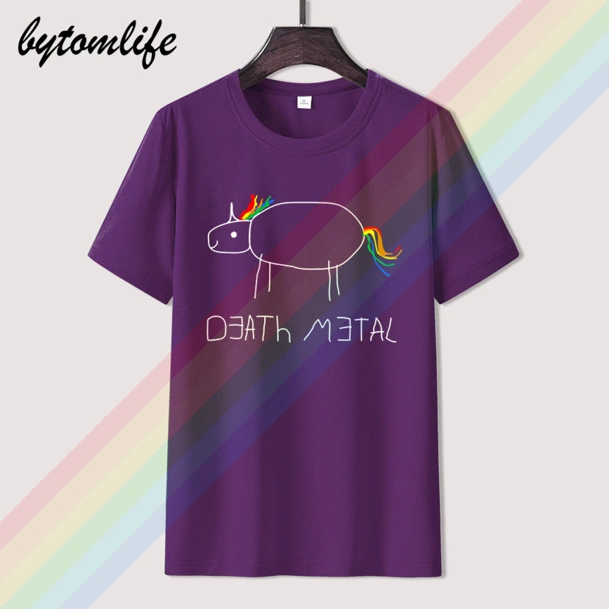 Футболка мужская с единорогом Death Metal, хлопковая тенниска черного цвета, винтажная мультяшная одежда в стиле хип-хоп, топы в стиле рок-н-ролл