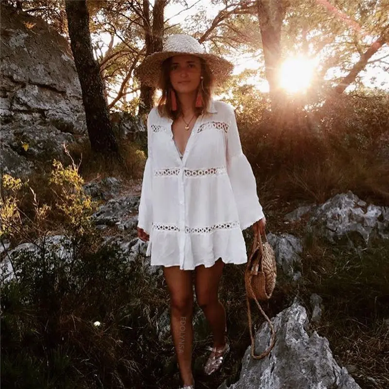 Женская Пляжная накидка с длинным рукавом, белые ажурные расклешенн...
