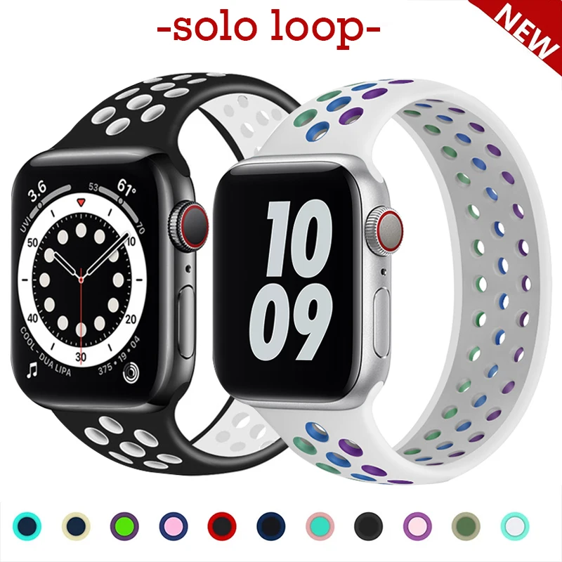 Ремешок Solo Loop для Apple Watch Band 44 мм 40 мм 38 мм 42 мм, Воздухопроницаемый Силиконовый эластичный браслет для iWatch Series 3 4 5 SE 6