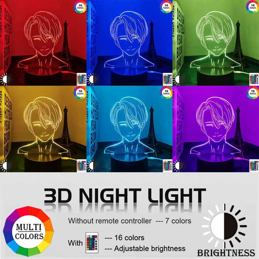 Светодиодный светильник Yuri on Ice Victor Nikiforov для спальни, ночсветильник для украшения спальни, подарок на день рождения, 3d лампа Victor Yuri on Ice