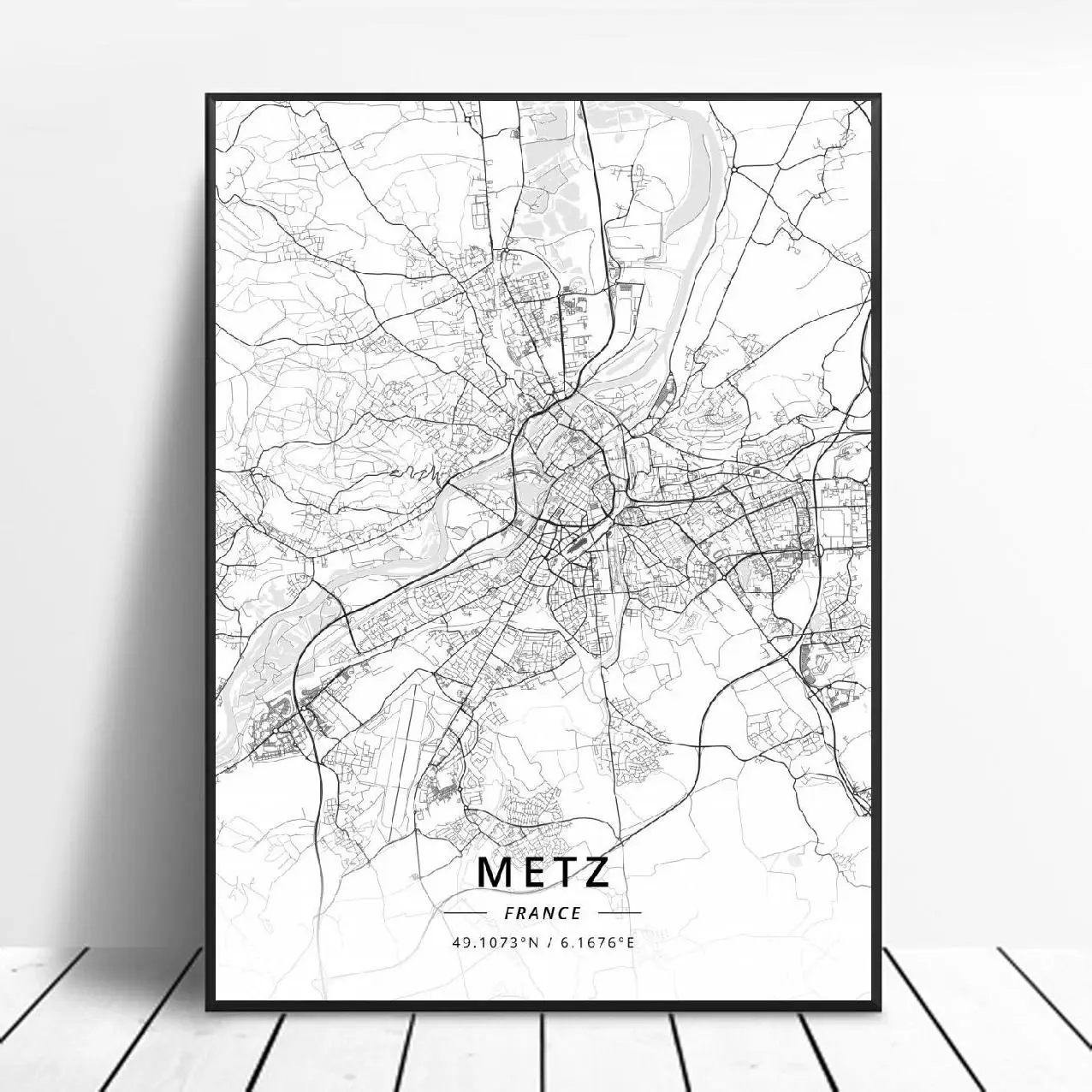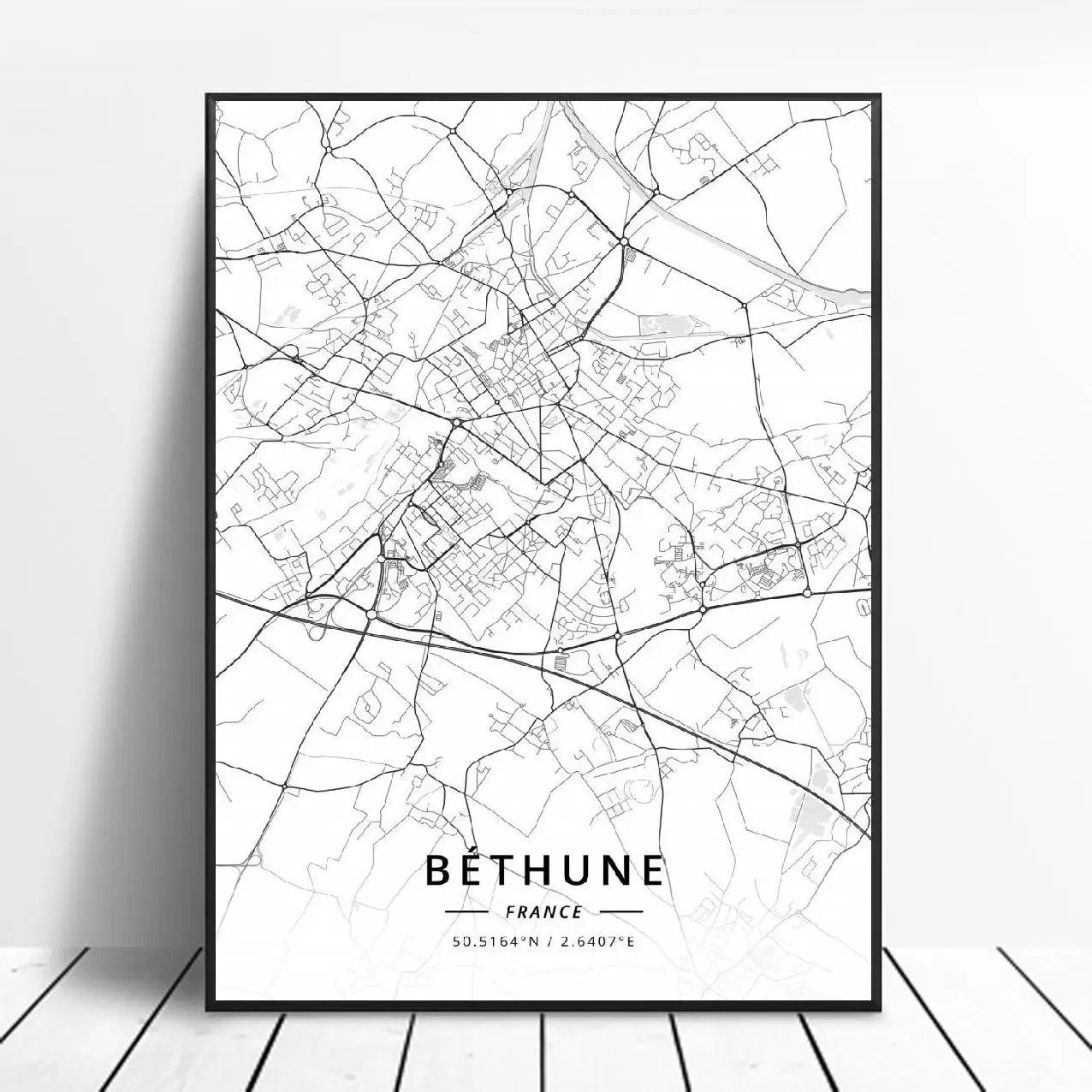 Черно-белый холщовый постер с принтом карты города стальбум, Соврем...