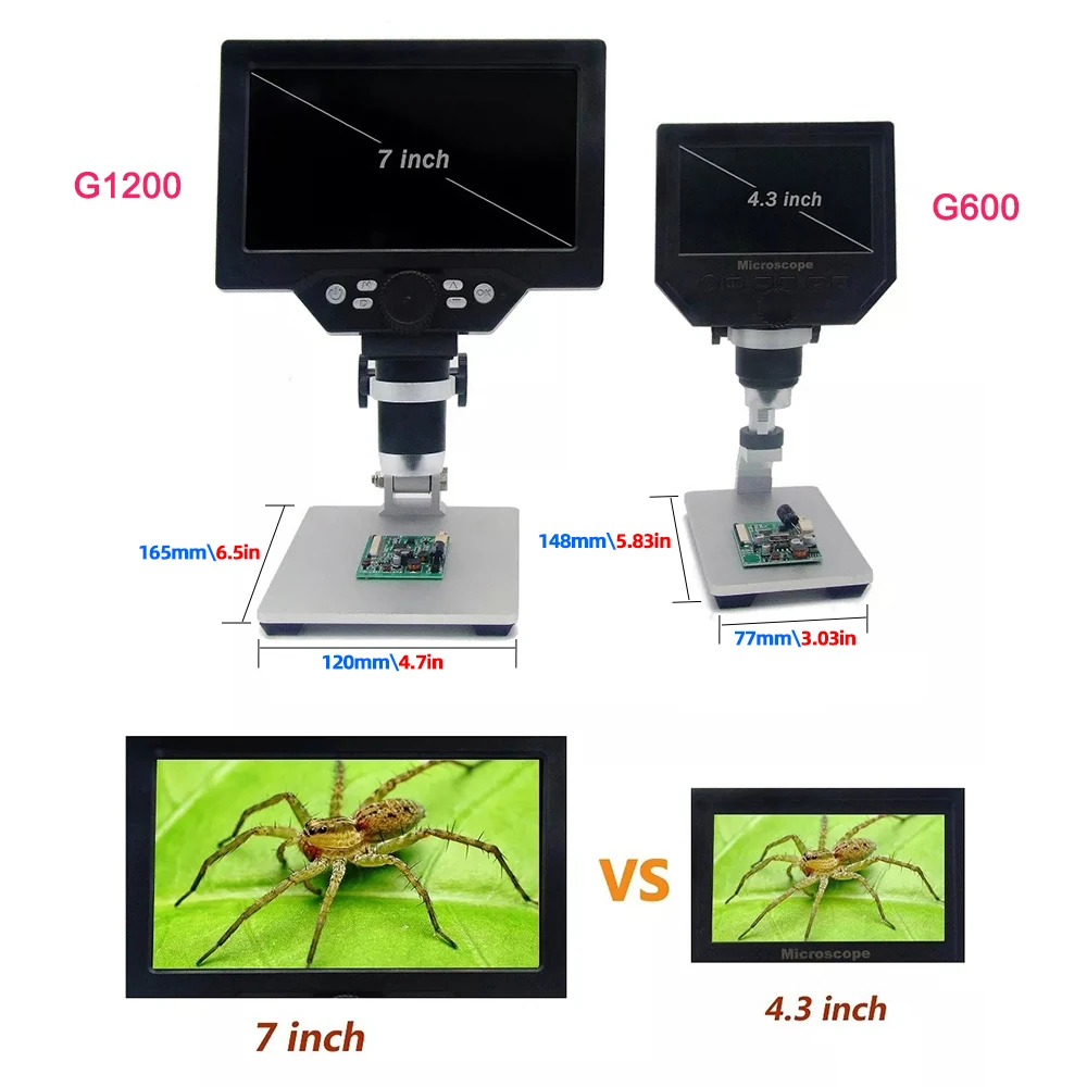 Микроскоп электронный Zoom 1-1200X, видео-микроскоп с металлической подставкой, с увеличением 7 дюймов 4,3 дюйма, с ЖК-экраном для ремонта телефонов