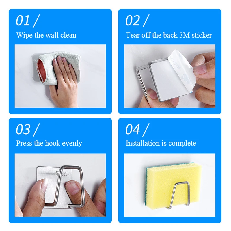 1 шт. самоклеющиеся подставка для спонжей 304 Нержавеющаясталь Non-...