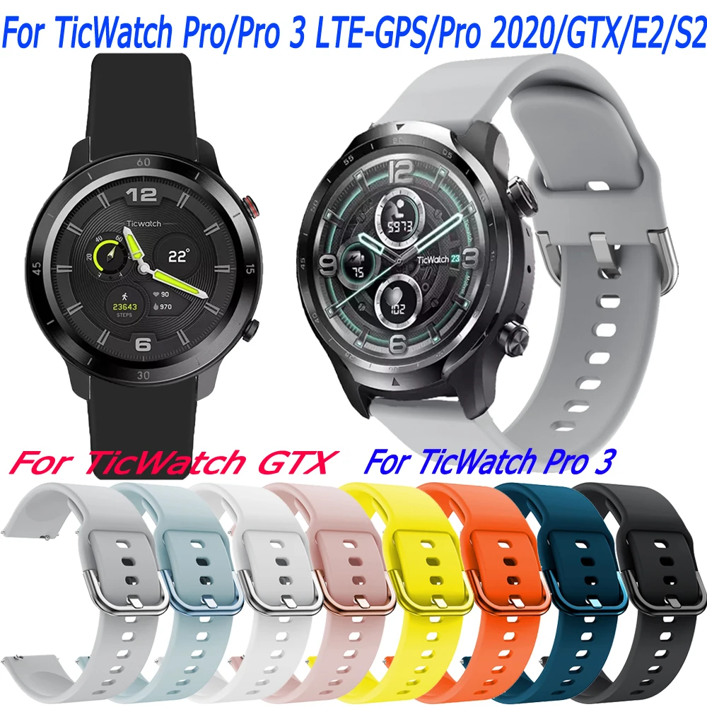 Новый ремешок для TicWatch Pro/Pro 3 LTE/GPS/Pro 2020/GTX/E2/S2 спортивный браслет на запястье, сменный ремешок для часов 22 мм силиконовый ремешок