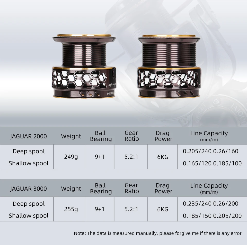 Характеристики продукта:1. Дизайн с мелкими и глубокими двумя катушками, отвечает вашим различным потребностям2. Высокопрочный композитный корпус, корпус и ротор.3. 9 + 1 шарикоподшипники из нержавеющей стали. Подходит для соленой и пресной рыбалки4. Винтовая система ручки + CNC Обработанная алюминиевая ручка ручки. Уменьшает зазор и тряску.5. Двойная анодированная алюминиевая катушка.6. Специальный механизм привода для ультра-Светильник вращения ручки и супер-гладкое ощущение.7. Прочный и тонкий толстый алюминий под залог8. Тормозная система из углеродного волокна, легко справляется с внезапной большой рыбой.Информация о продукте:1. JAGUAR2000 | Вес: 249 г | Передаточное отношение: 5,2: 1 | Подшипник: 9 + 1BB | Максимальное сопротивление: 6 кг | Линейная Емкость (мм-М): глубокий 0,205/240, 0,26/160 мелкий 0,165/120, 0,185/1002. JAGUAR3000 | Вес: 255 г | Передаточное отношение: 5,2: 1 | Подшипник: 9 + 1BB | Максимальное сопротивление: 6 кг | Линейная Емкость (мм-М): глубокий 0,235/240,0.26/200 мелкий 0,185/150,0.205/2Посылка:1 шт. * Катушка Jaguar1 шт. * Катушка1 шт. * сумка для катушки