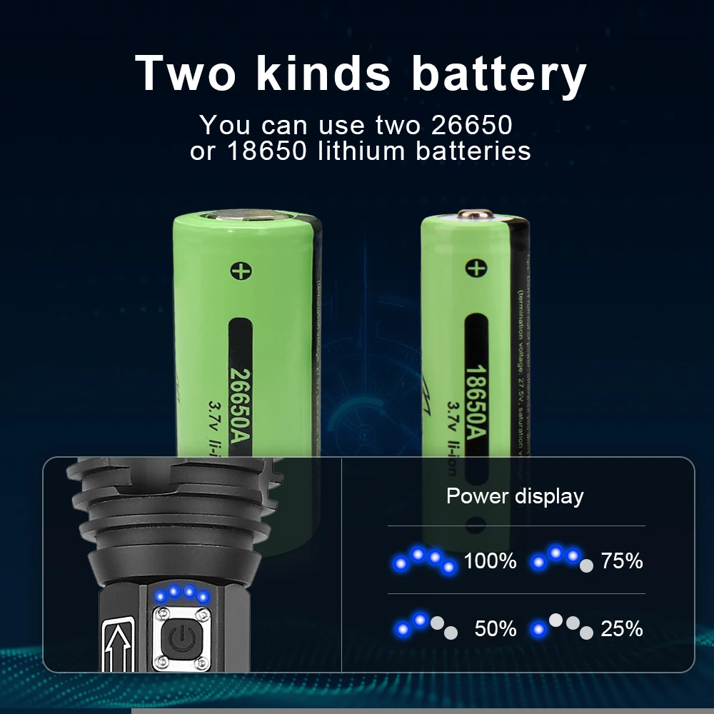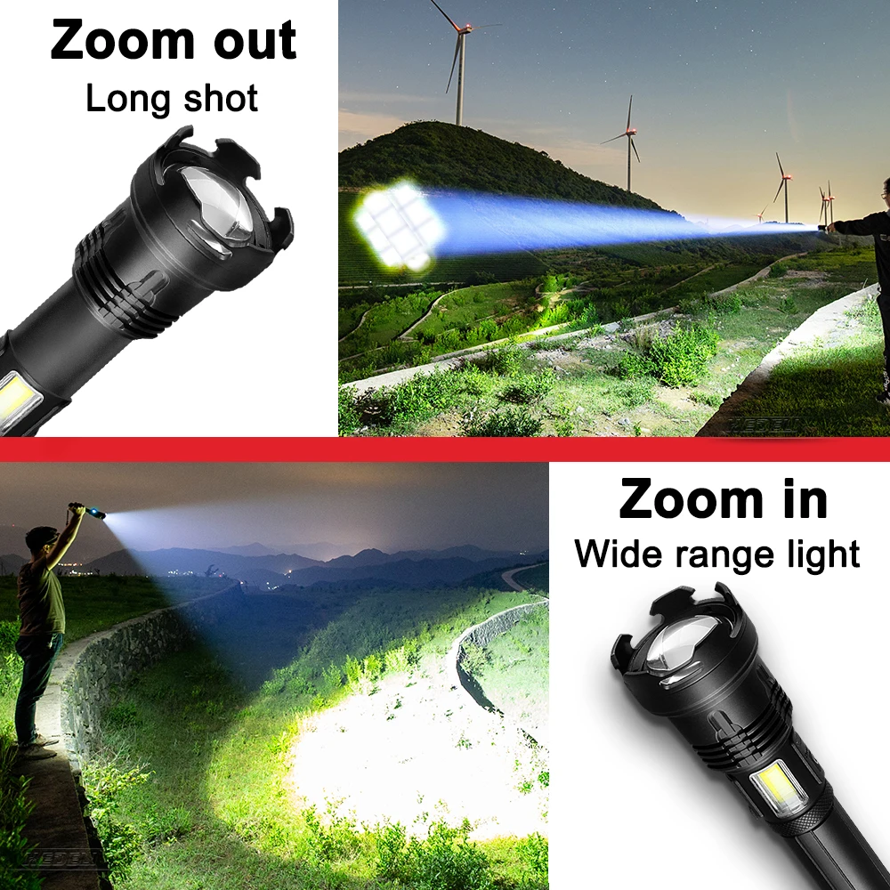 ♥Фитиль высокой яркости XHP160, четырехжильный фитиль в упаковке и выпуклая линза, всесторонне улучшает производительность освещения♥Конструкция лампы COB, может использоваться как настольная лампа♥Настоящий материал, супер алюминиевый сплав, сжатие и защита от падения♥Телескопический зум, яркий прожектор, большая мощность дальнего действия, широкий диапазон прожектора, большое расстояние прожектора♥Аккумулятор 3600 мАч, с использованием перезаряжаемого аккумулятора 18650 или 26650. Во внутренней проводке используется Высокоэффективная схема наддува для максимального использования аккумулятора. Длиннее и долговечнее обычных батарей.♥USB вход и выход, заряженный дисплей, может использоваться как фонарик и аварийный источник питания, двойного назначения♥Уровень водонепроницаемости может достигать уровня 8, что позволяет легко справиться с суровой внешней средой в ночное время