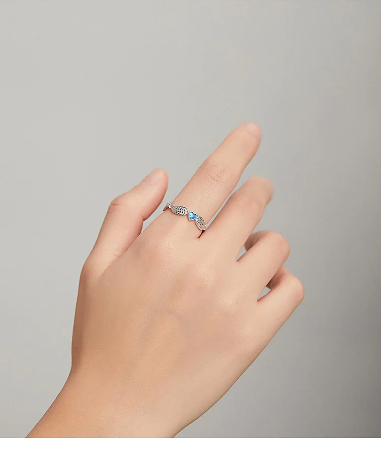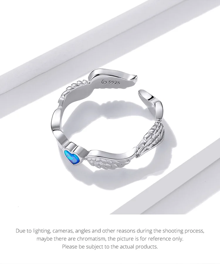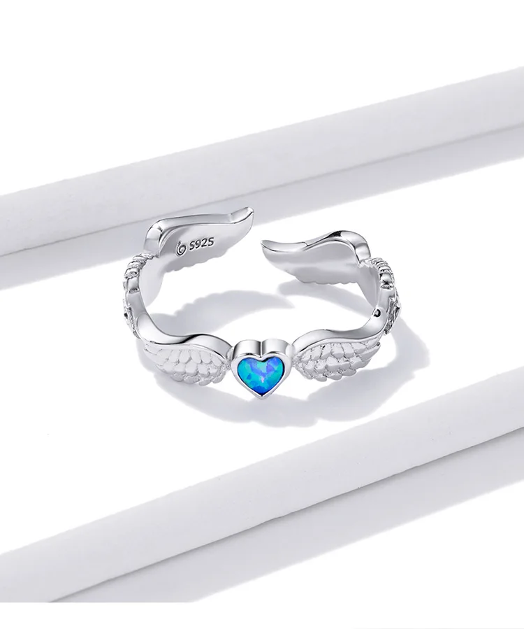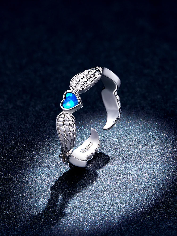 Женское кольцо bamoer, регулируемое кольцо с синим сердцем и крыльями ангела из стерлингового серебра 925 пробы, модные свадебные украшения