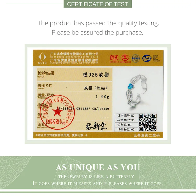 Номер Сертификатаbamoer fashion jewelry
