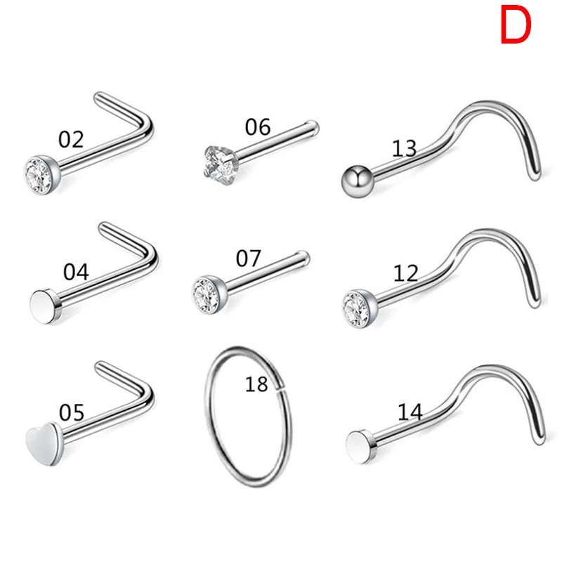 Гвоздики для носа из хирургической стали, винты-кольца для носа, се...