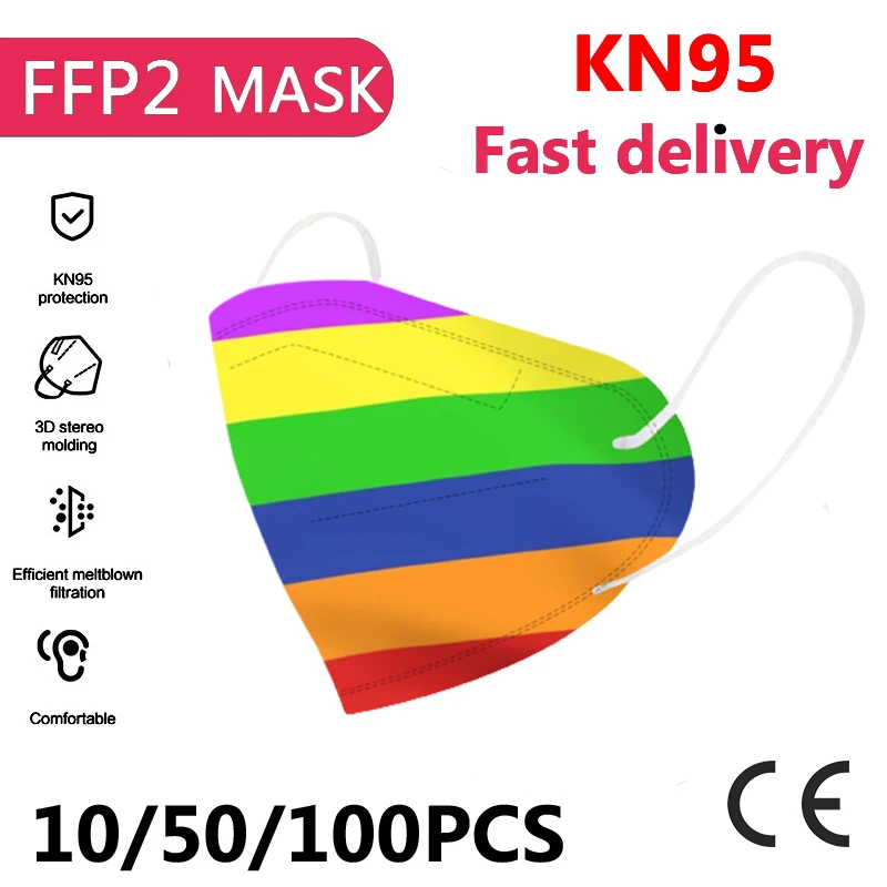 Маски радужные kn95 с фильтрацией 100, 5 слоев, ffp2, 1020305095% шт.