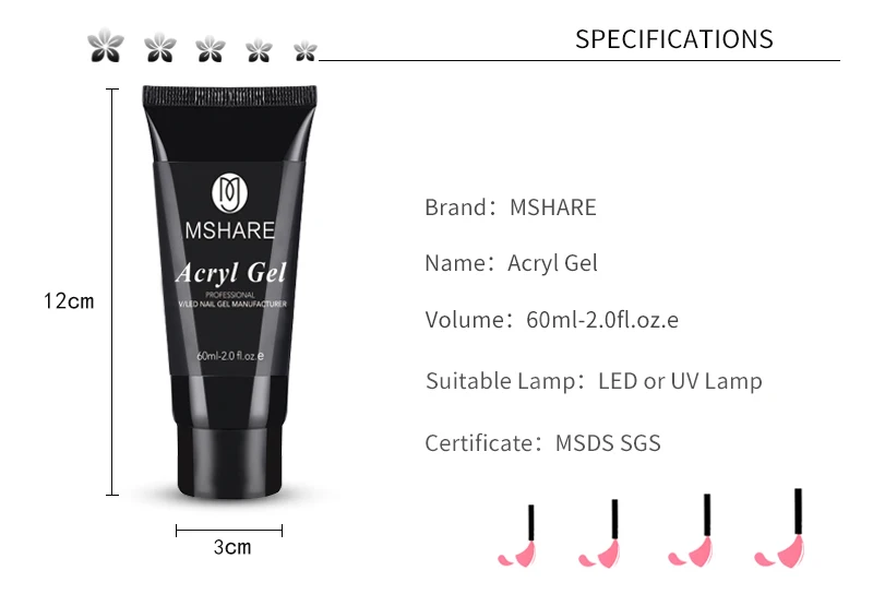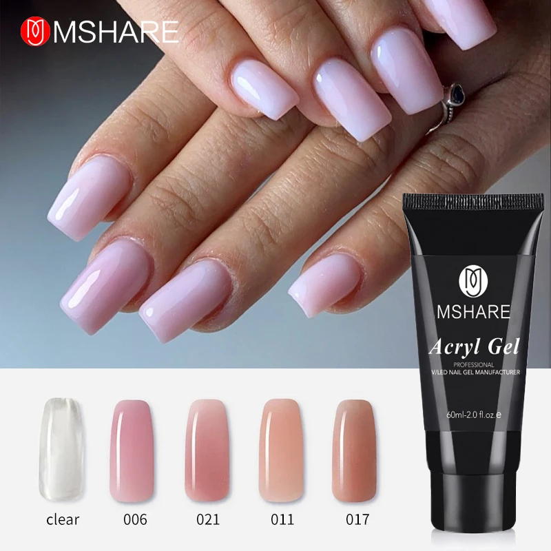 Акриловый гель MSHARE для наращивания ногтей, профессиональный УФ-гель, Led, 60 мл, розовый, белый, прозрачный