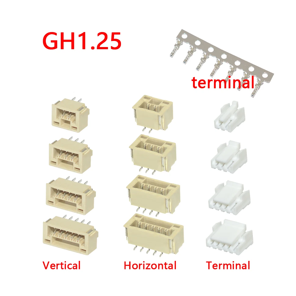 GH1.25 GH 1,251,27 1,25 мм с замковым разъемом, штыревой разъем, вертикальный горизонтальный JST, клемма корпуса 2 3 4 5 6 7 8 10 p