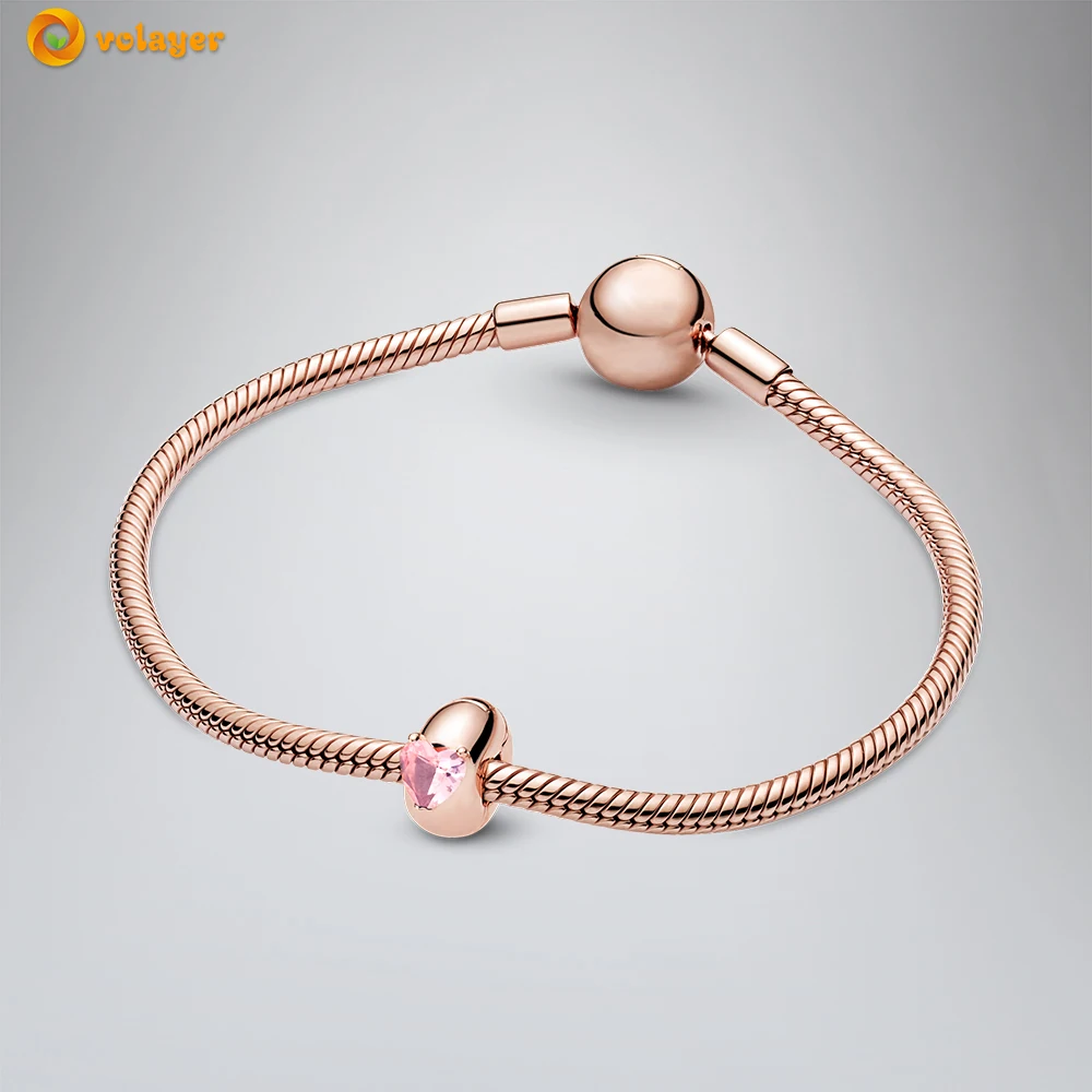 Женский браслет из серебра 925 пробы, с розовым сердцем