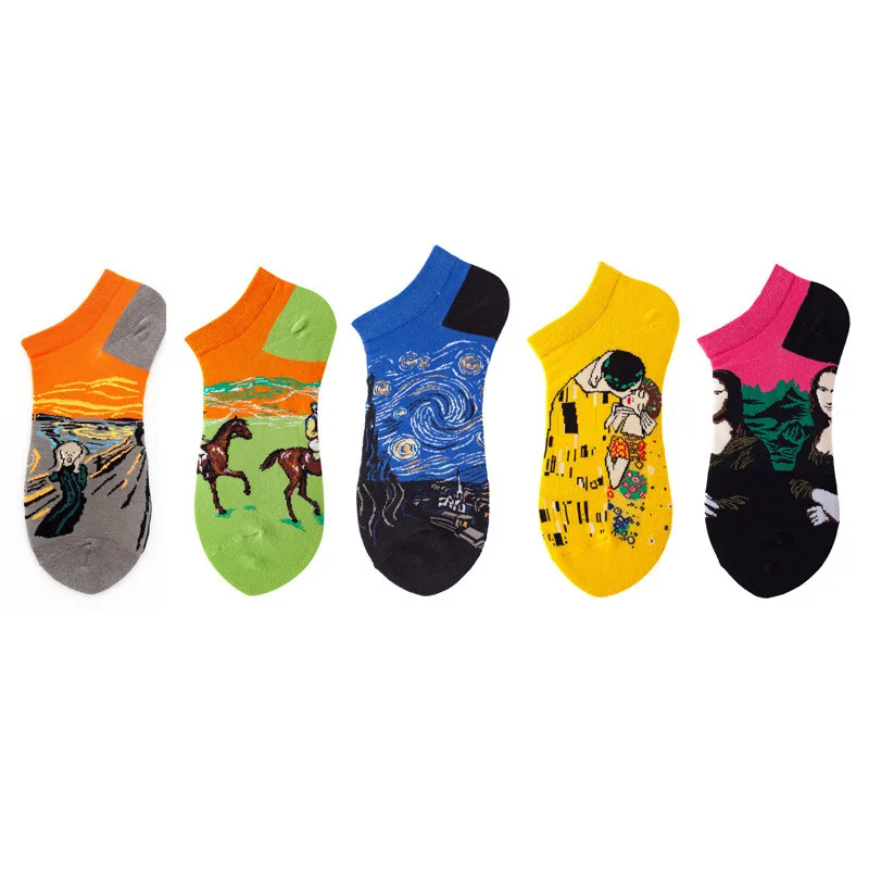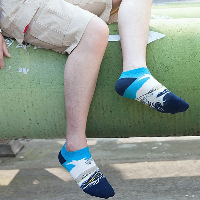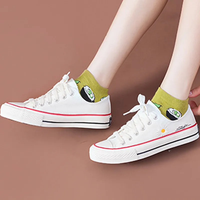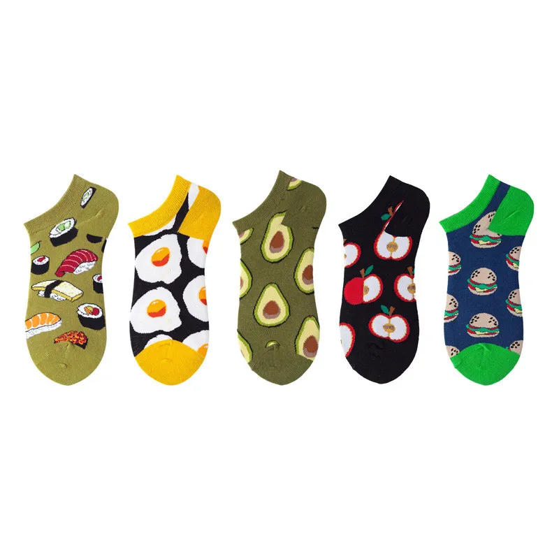 Носки-невидимки хлопковые для мужчин и женщин, смешные носки с принтом животных, фруктов, Летние Симпатичные Короткие тапочки, 5 пар