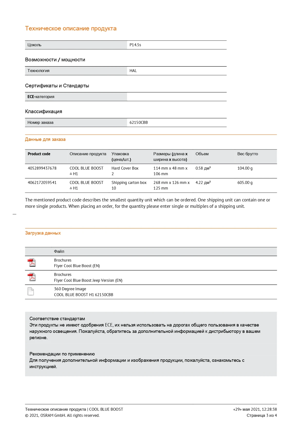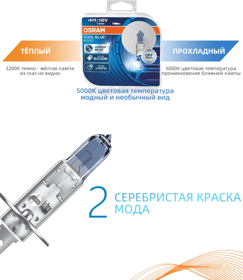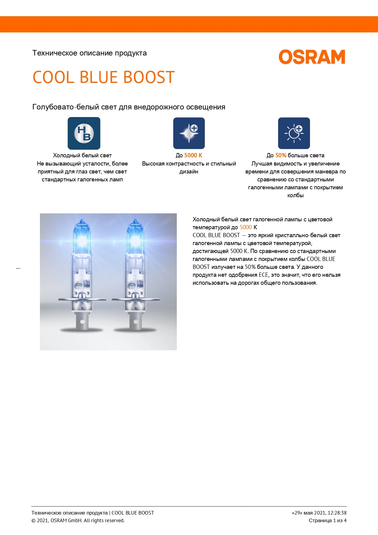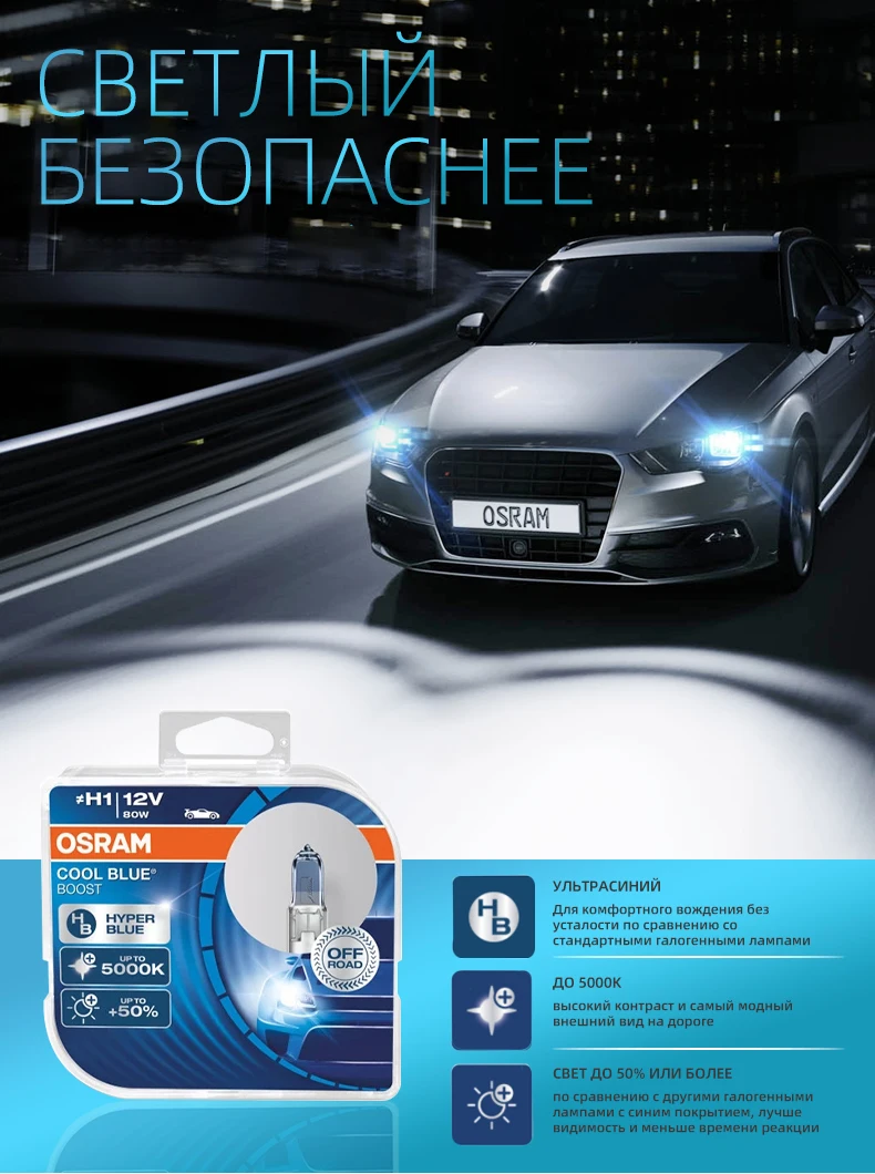 Галогенная лампа H1 OSRAM Cool Blue Boost (эффект ксенона) 12V-80W 62150CBB (уп.2шт.)