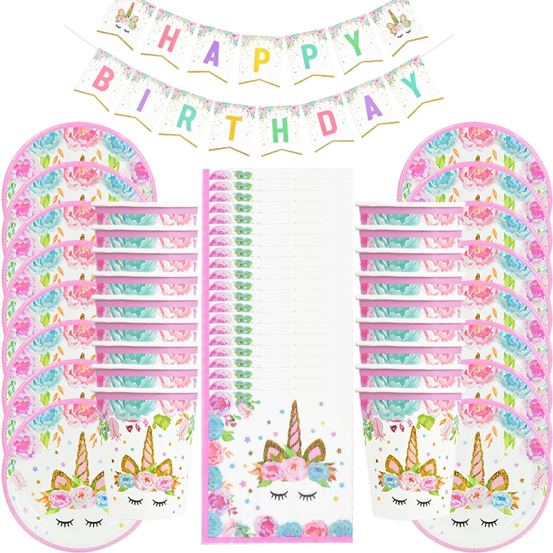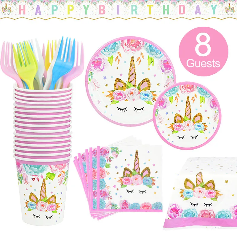 Набор одноразовой посуды с радужным единорогом для дня рождения